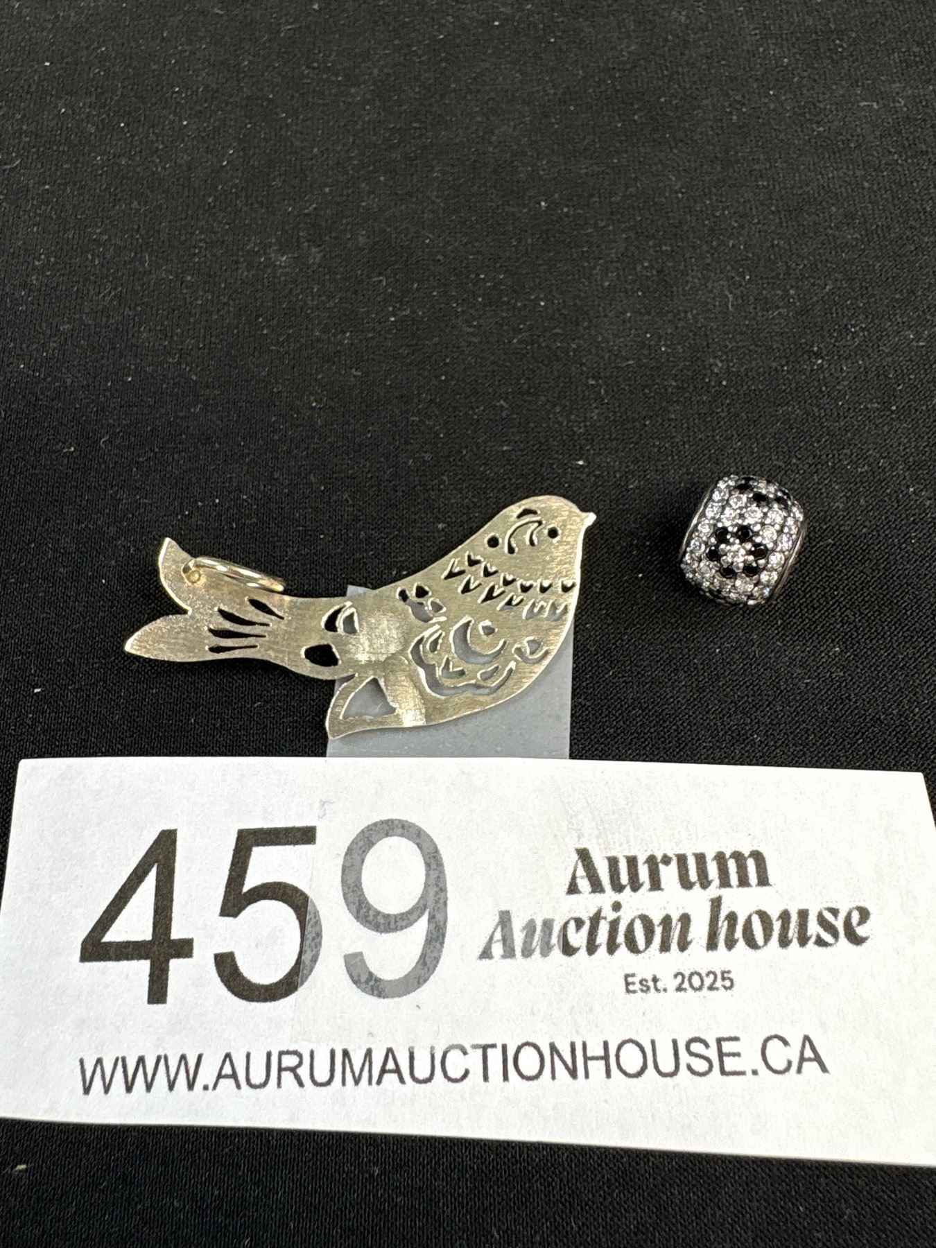 Lot 459 Sterling Silver Bird and Pandora Bead Pendants Each Marked 925