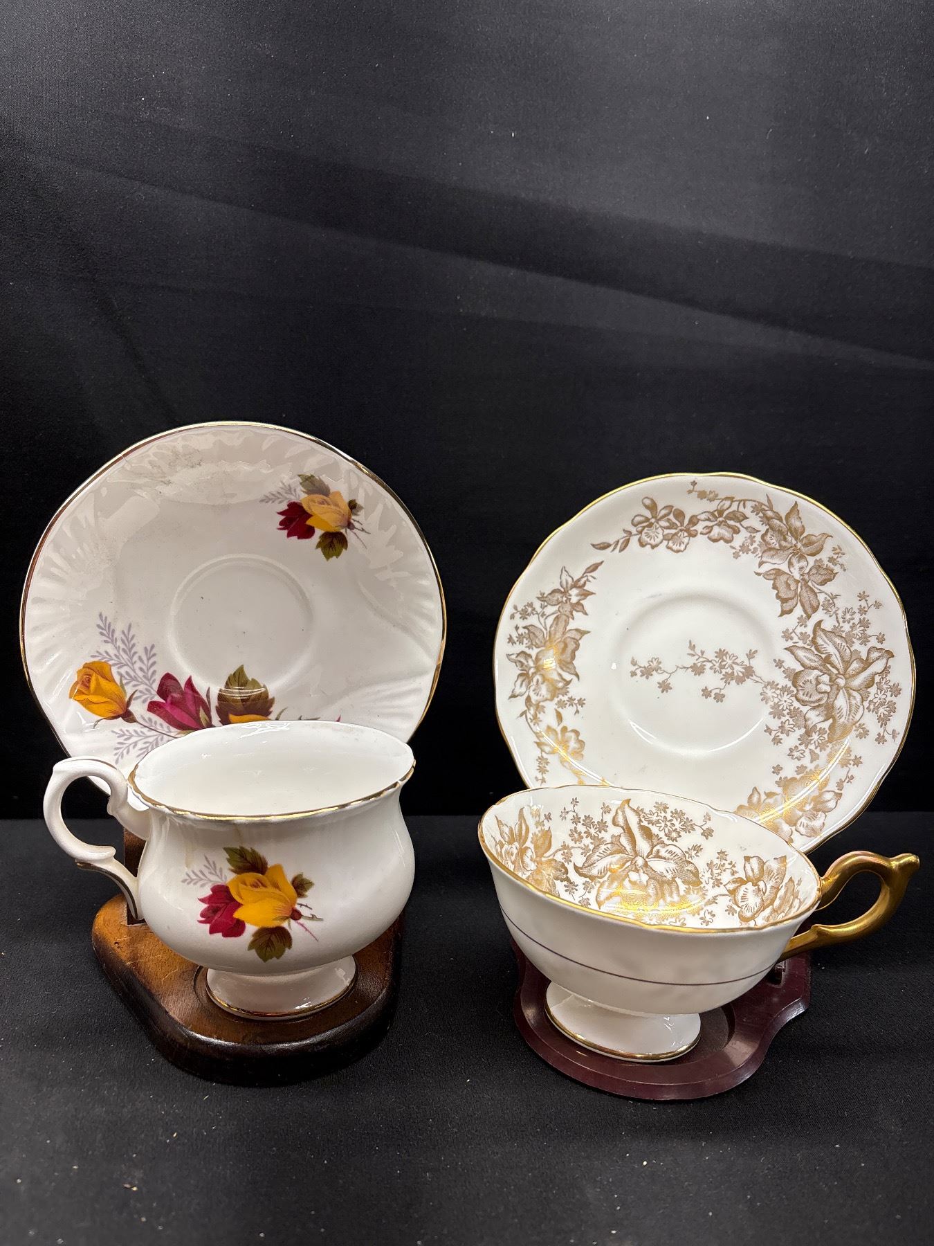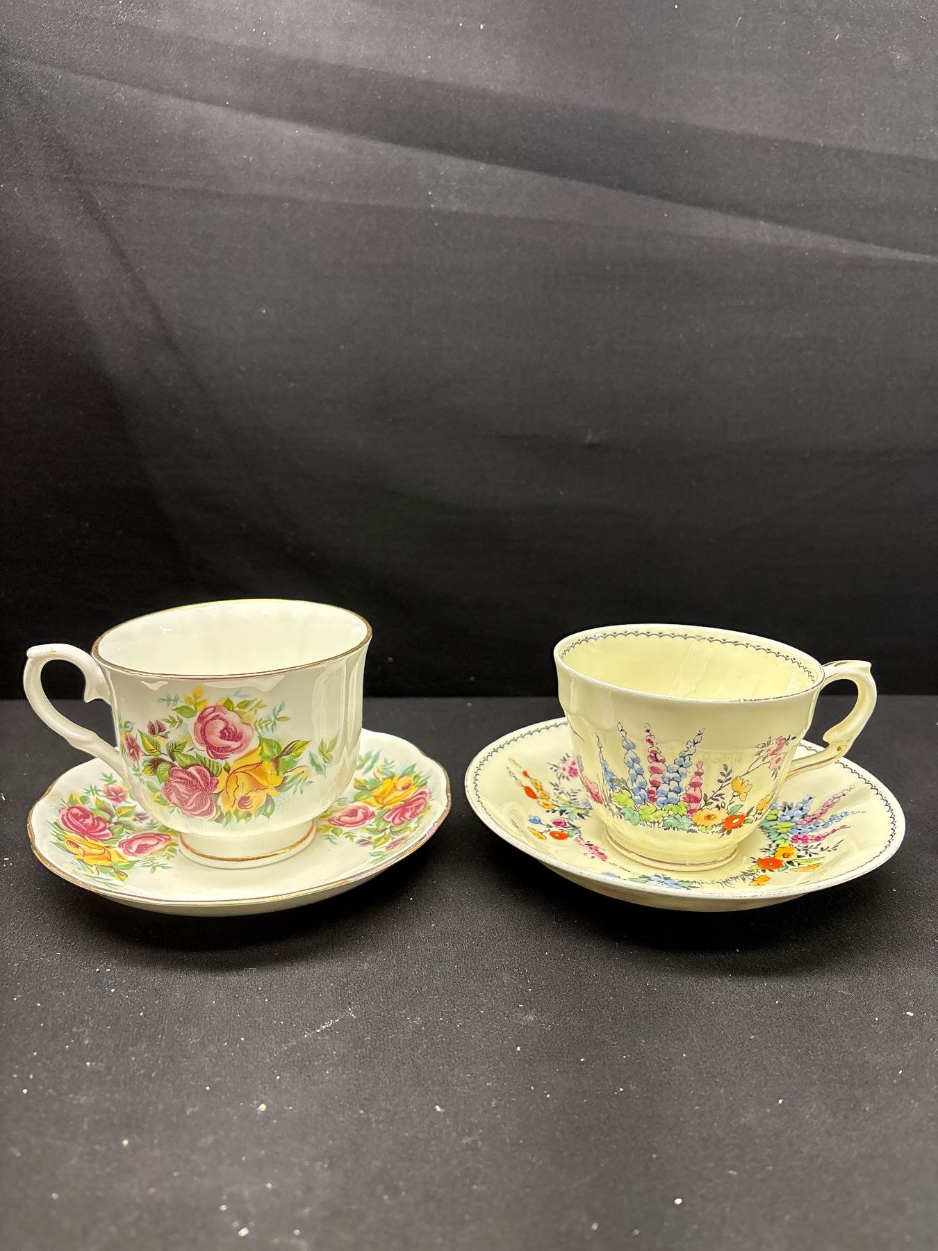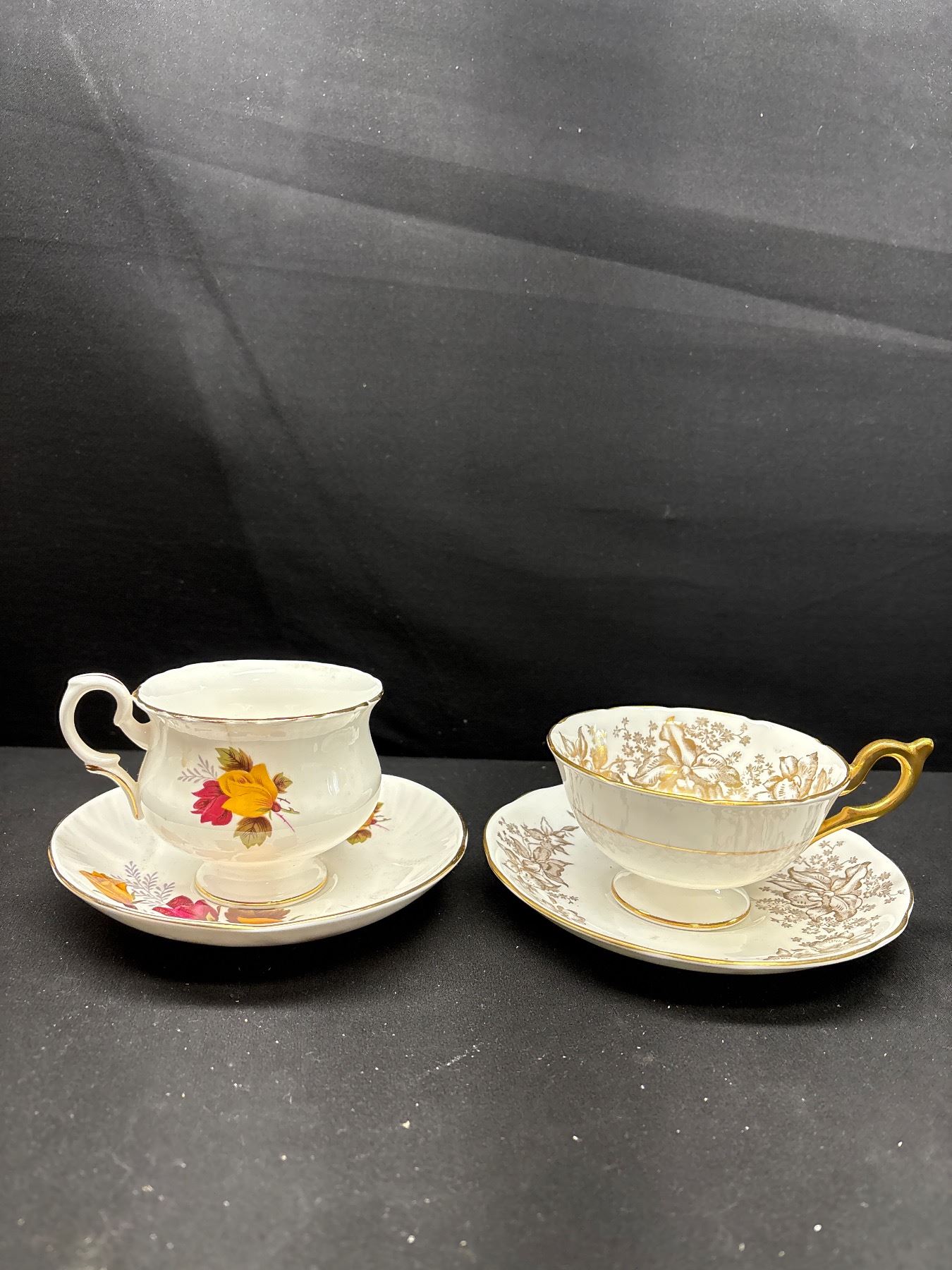 Lot 516 Lot of 15 Vintage Bone China Teacups and Saucers No Chips or Cracks, Royal Albert, Wedgewood Etc