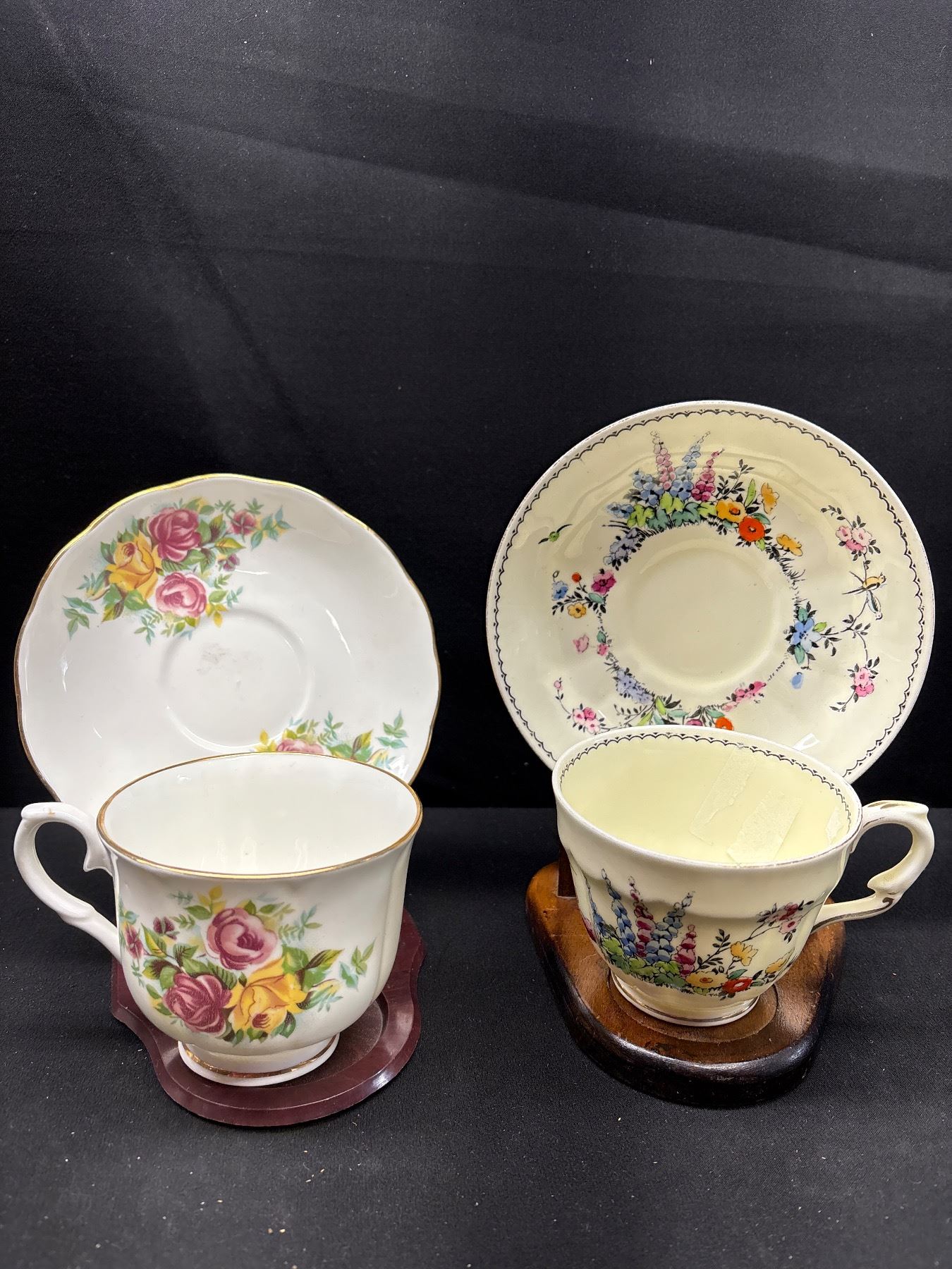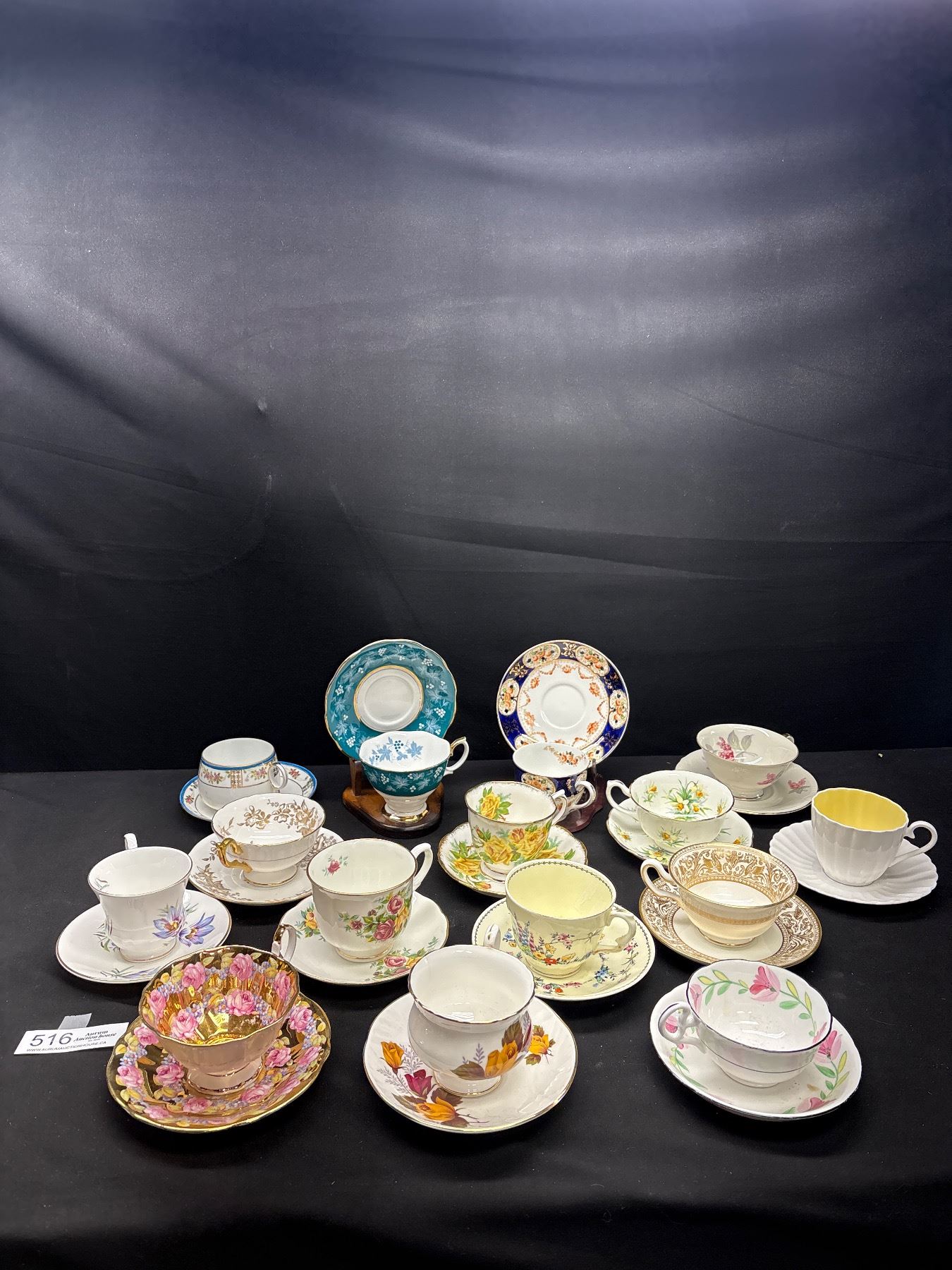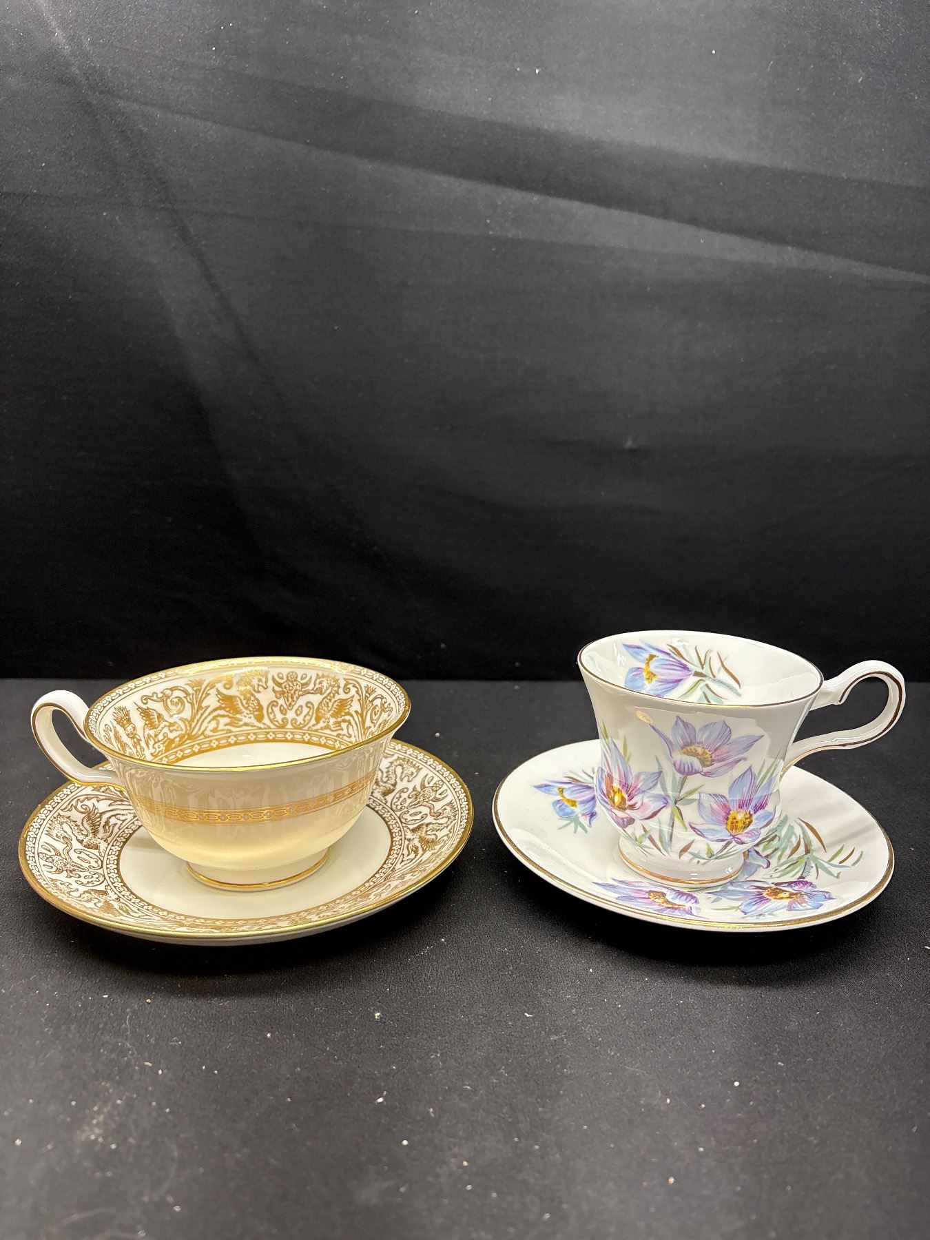 Lot 516 Lot of 15 Vintage Bone China Teacups and Saucers No Chips or Cracks, Royal Albert, Wedgewood Etc