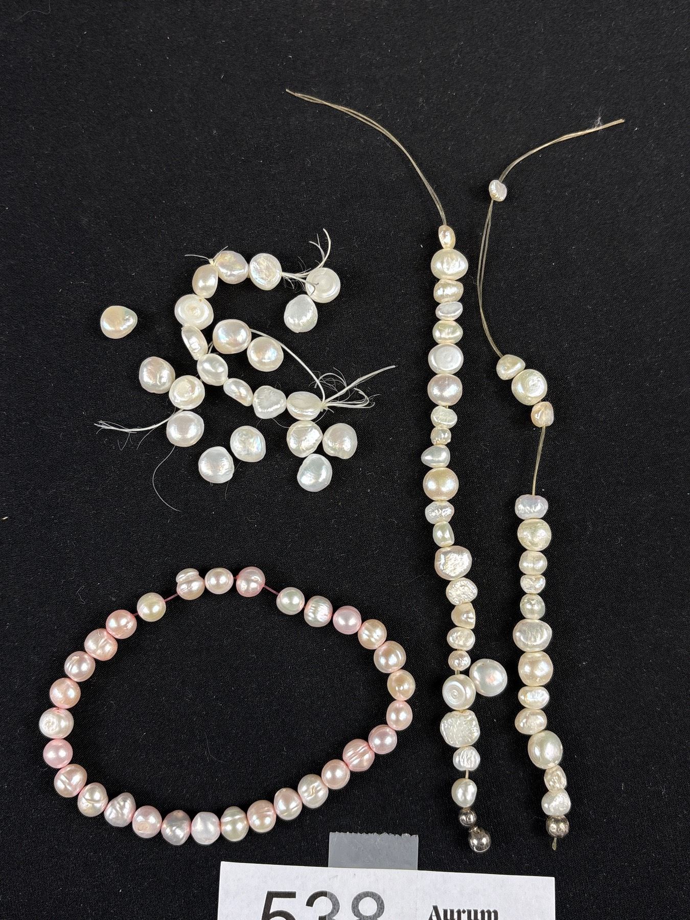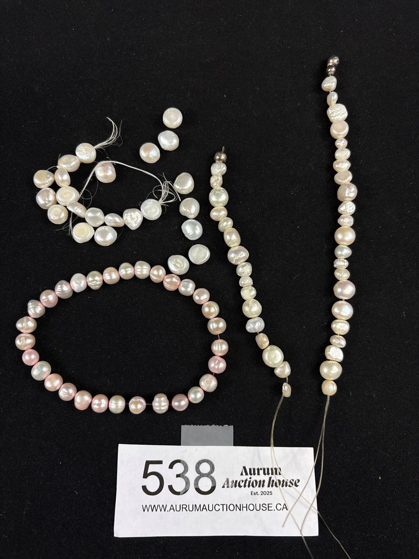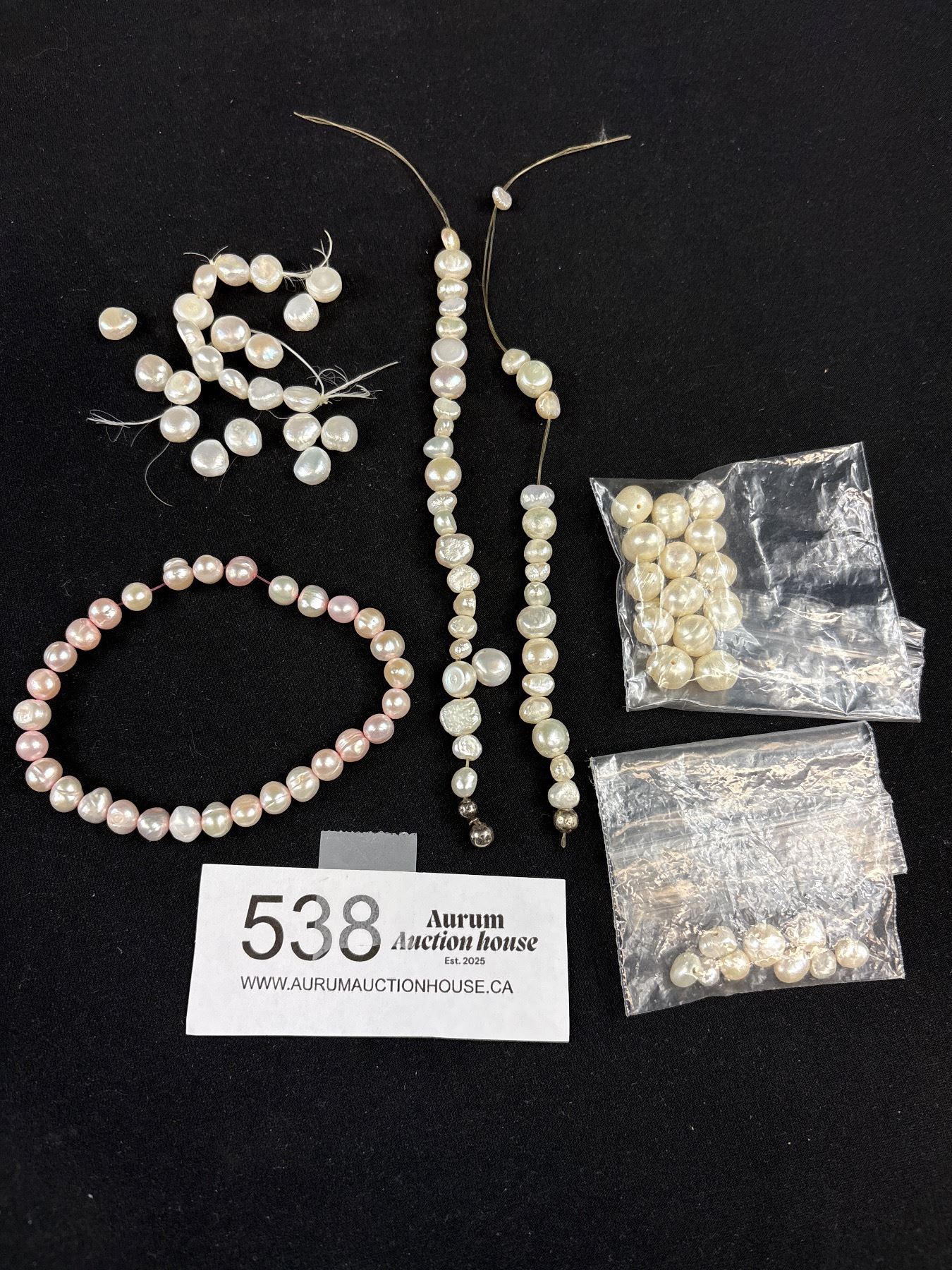 Lot 538 Several Genuine Pearls Broken Bracelets + Loose Pearls