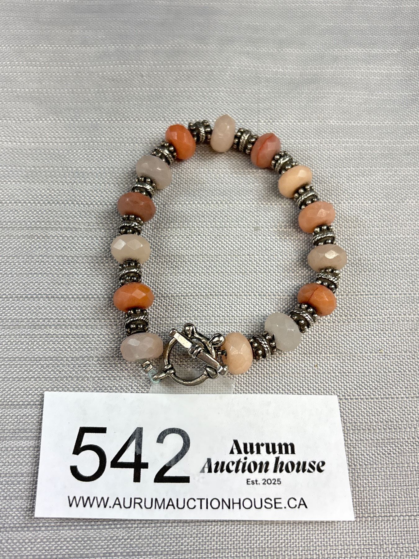 Lot 542 Silver w/ Genuine Stone Beads Bracelet