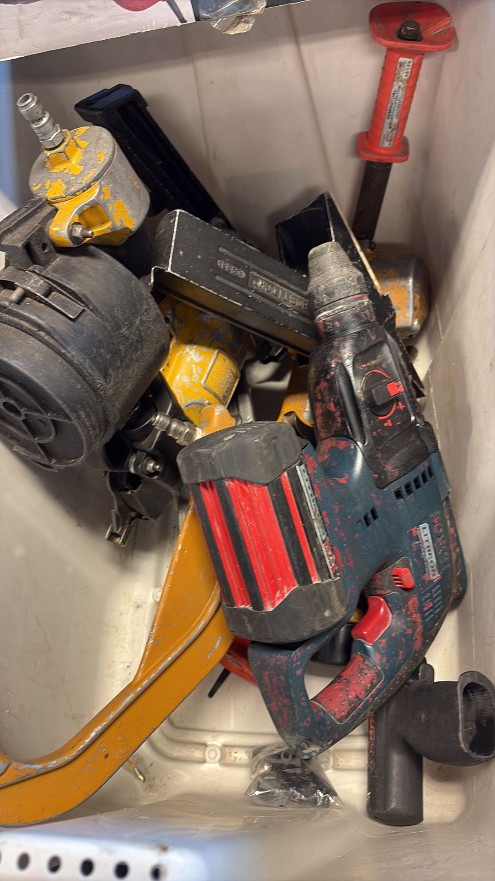 Lot 212 MISC PNEUMATIC AND POWER TOOLS INCL NAILERS, BOSCH 36V CORDLESS ROTARY HAMMER DRILL AND MORE