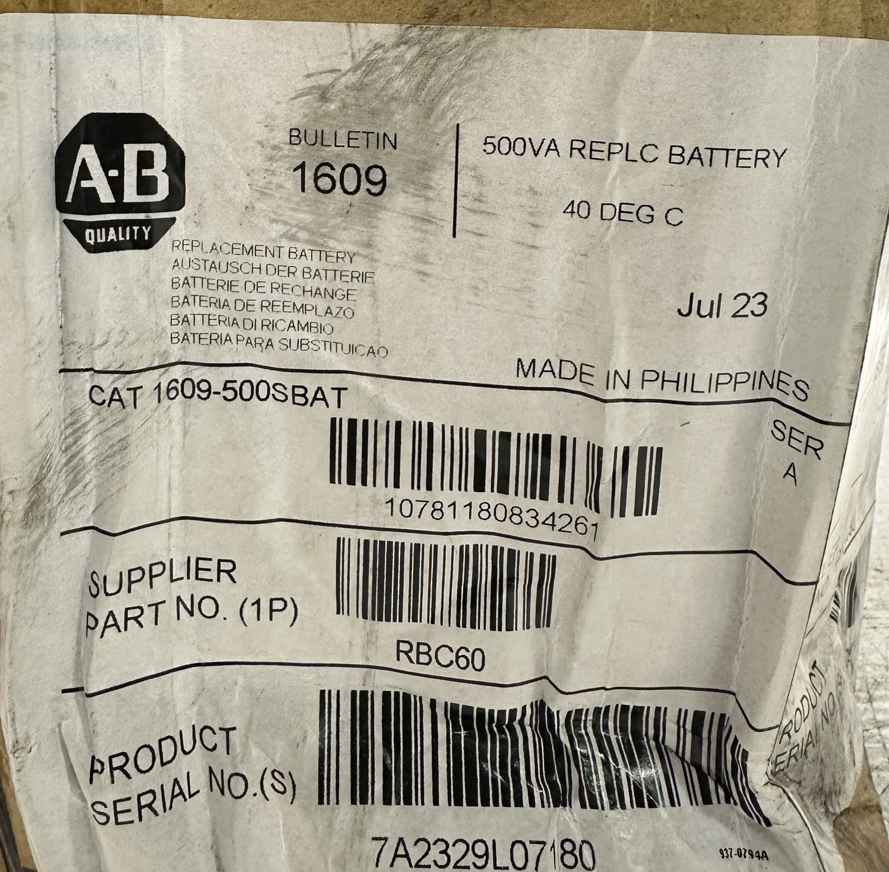Lot 482 Allen Bradley #1609-500SBAT Power Unit