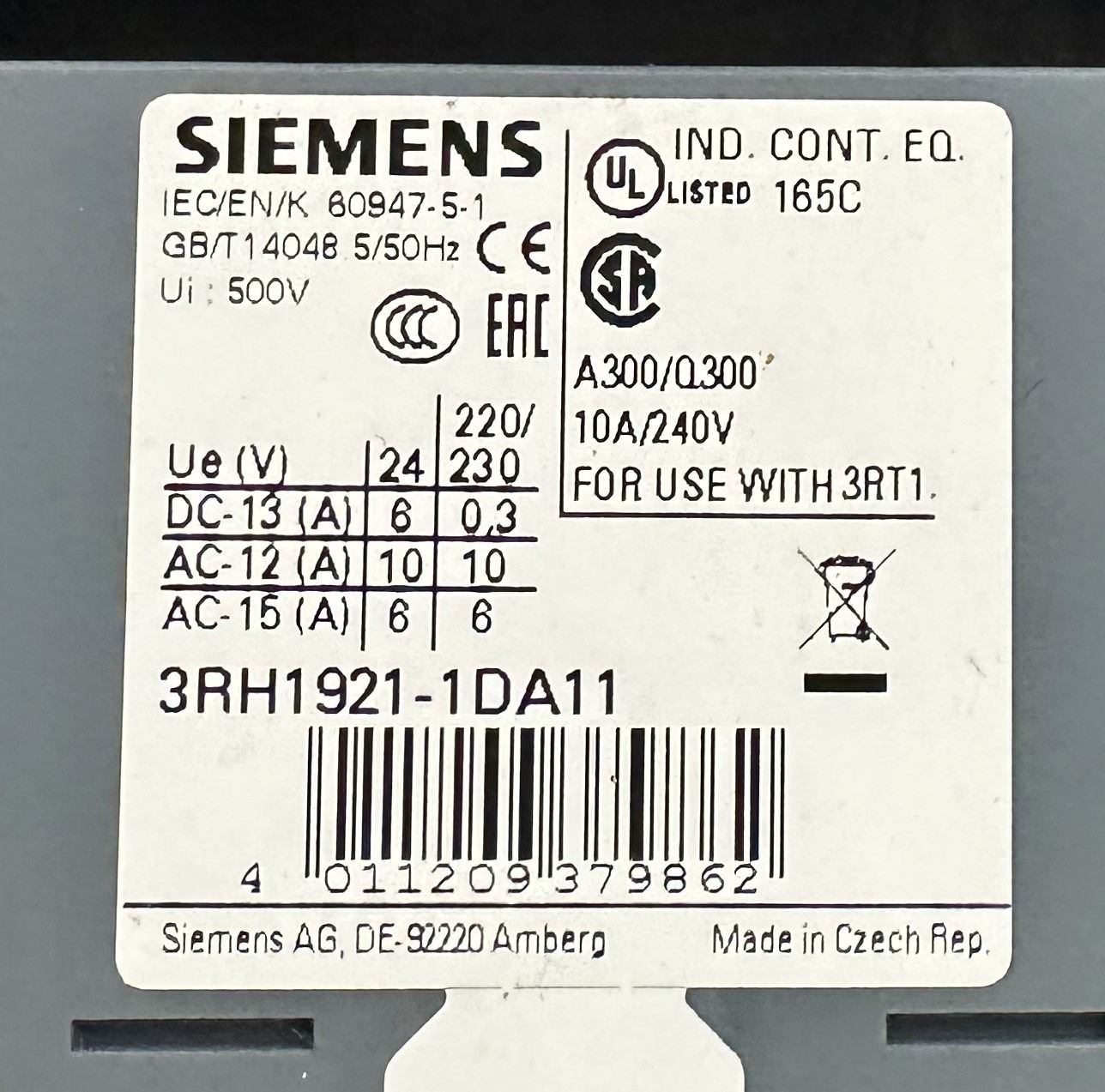 Siemens #3RT1056-6AF36 Contactor
