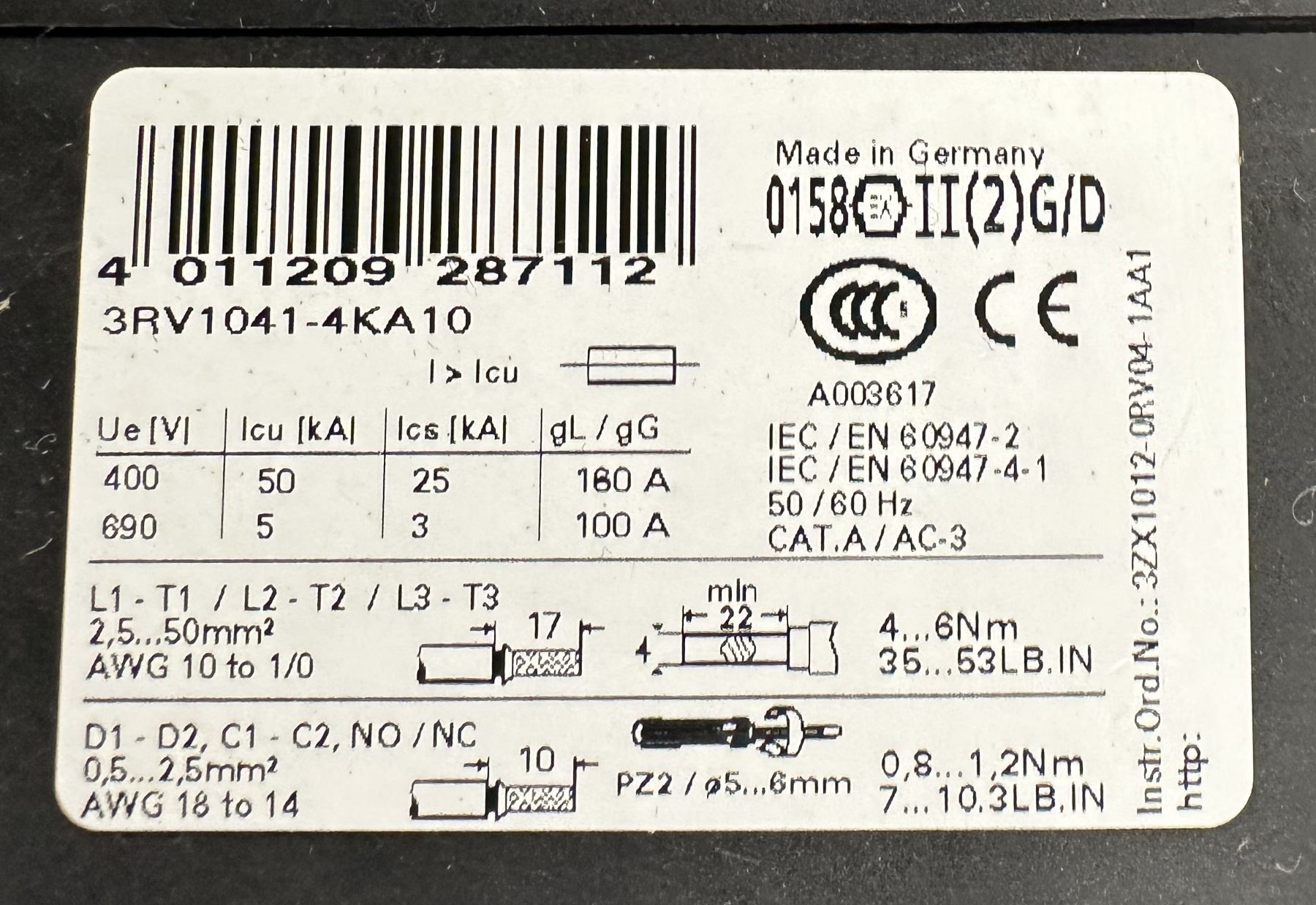 Siemens #3RV1041-4KA10 Circuit Breaker