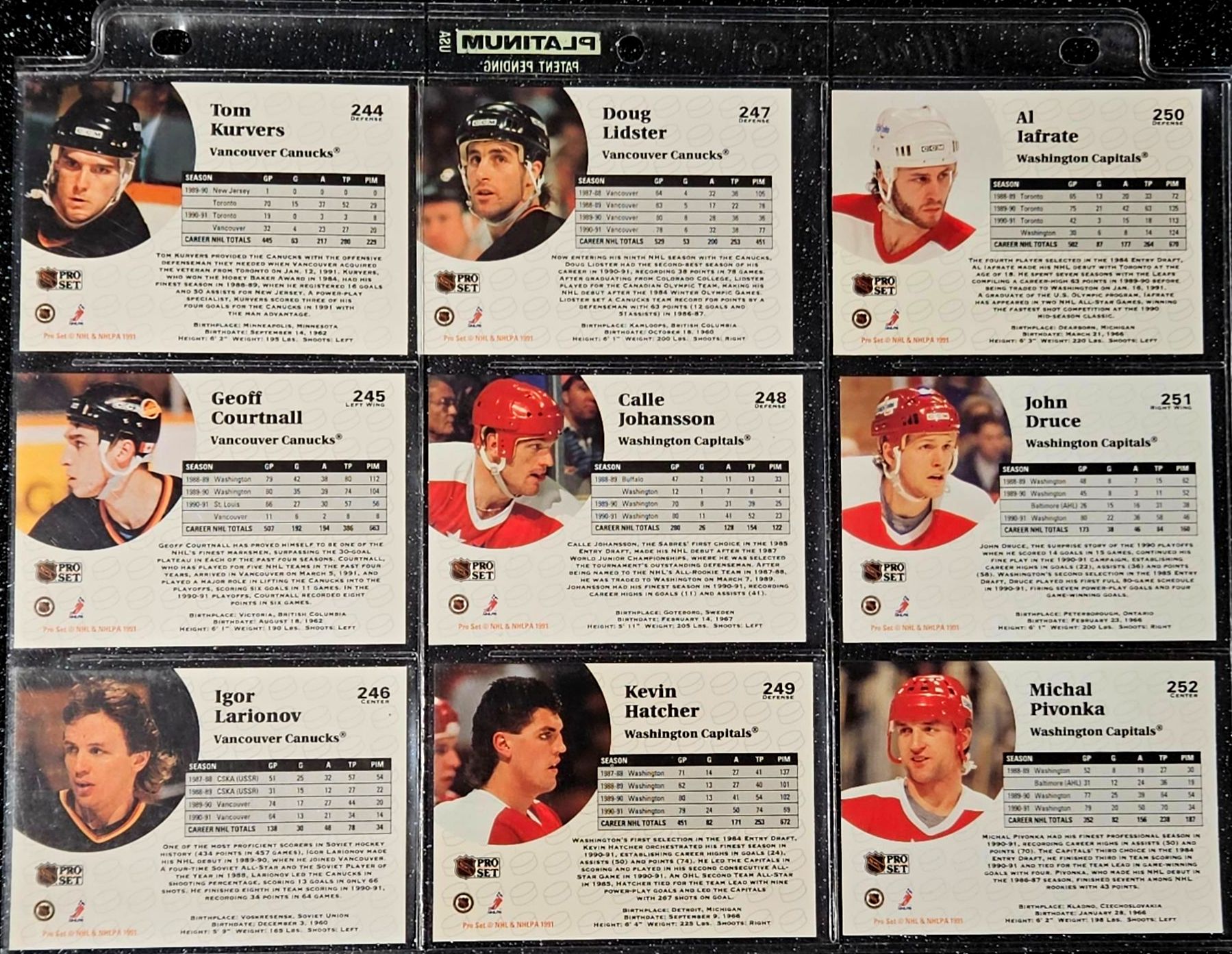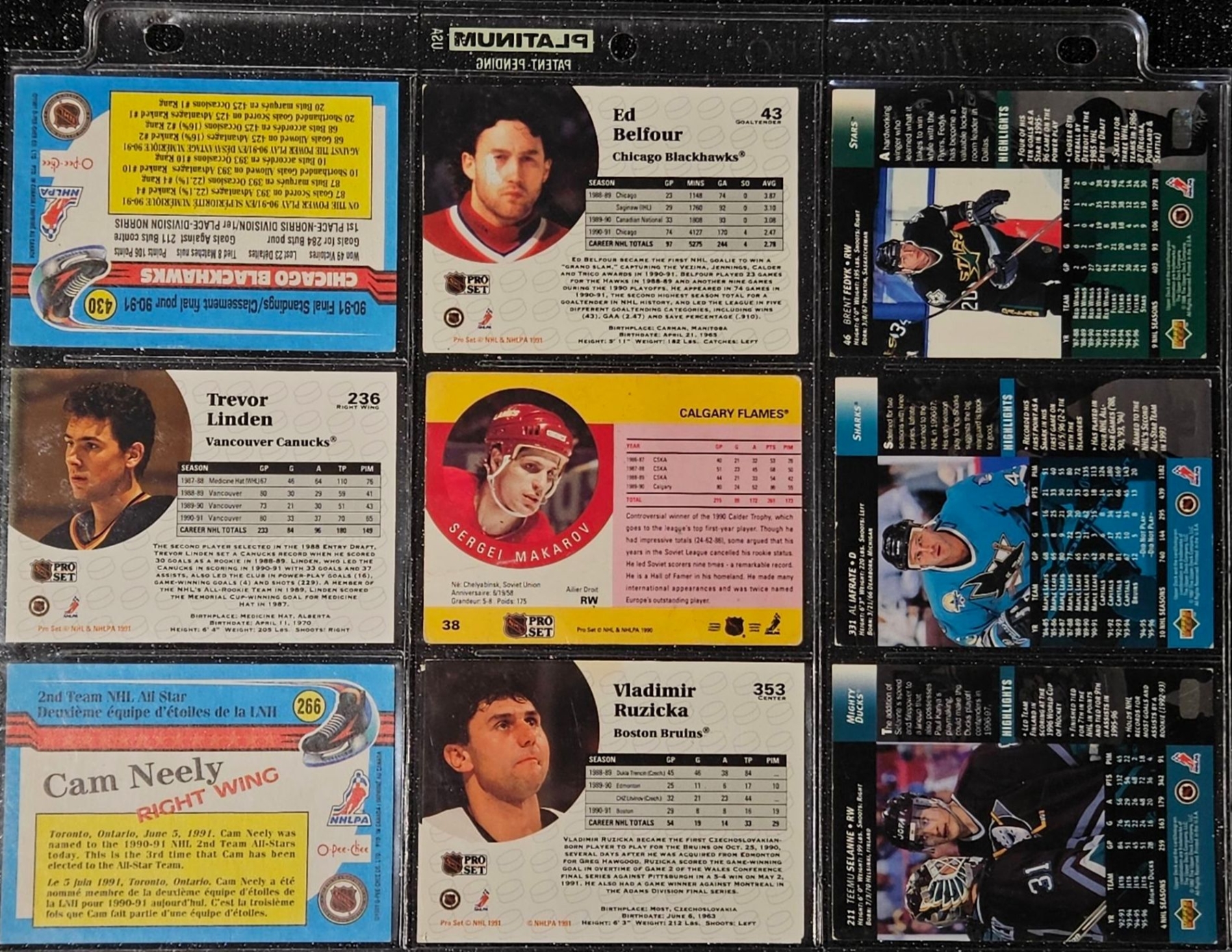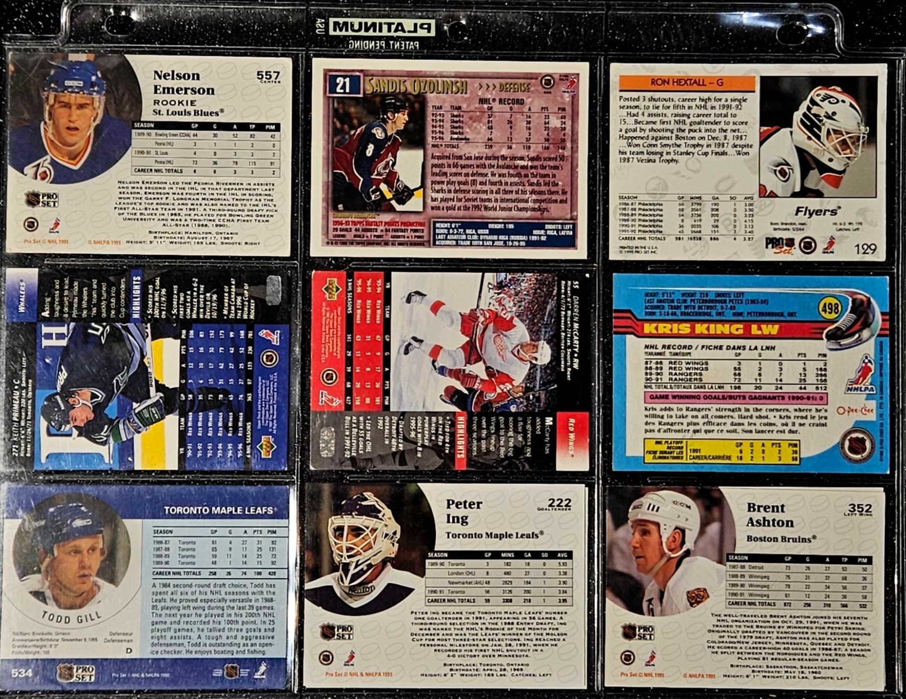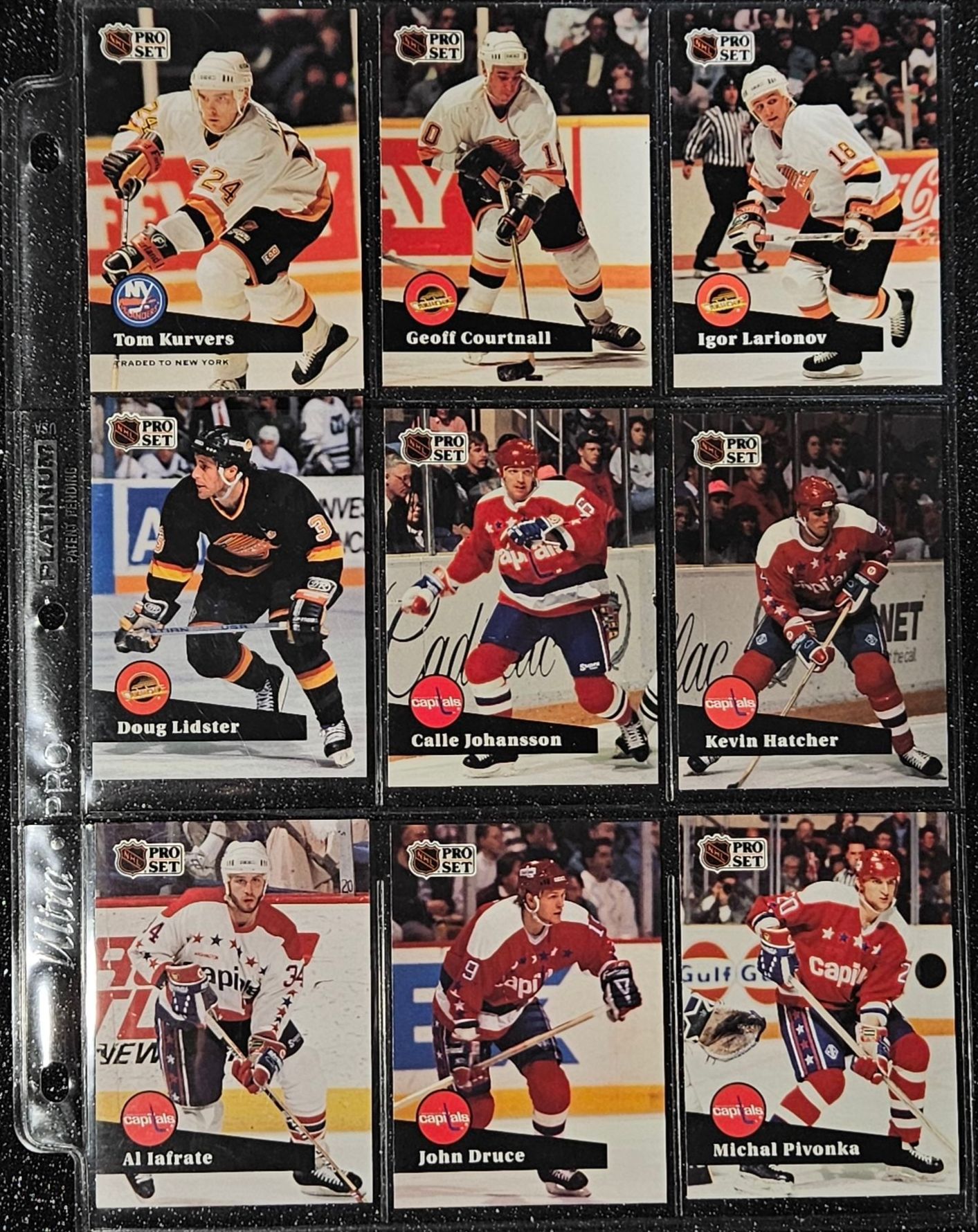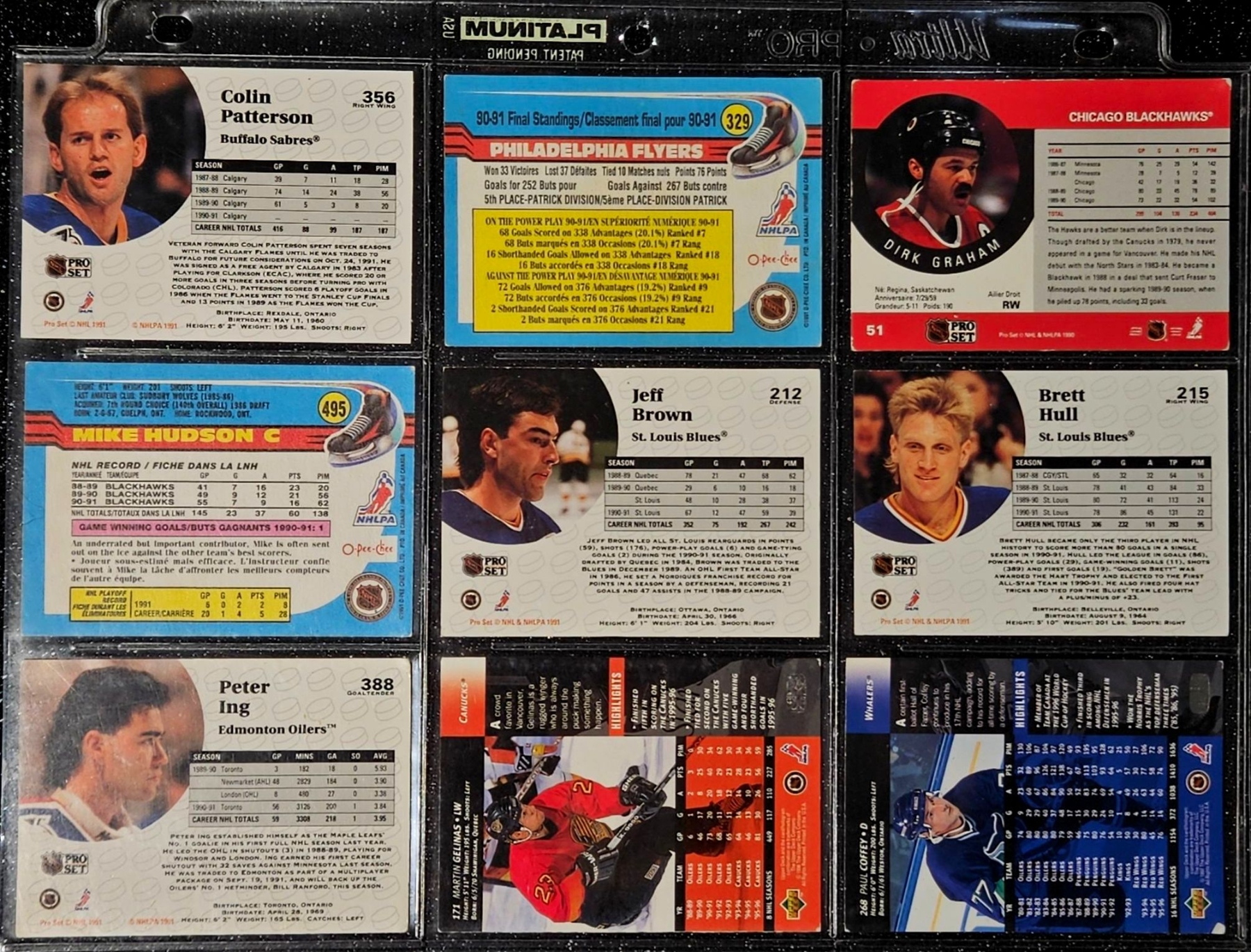 This Vintage NHL 1990's Set Includes Notable Players Such as Brett Hull, Dirk Graham, and Peter Ing. The Cards Are In a Protective Plastic Binder Sheet( 10 sheets total)