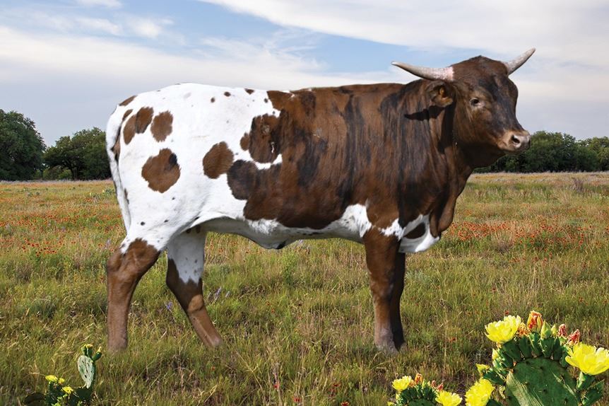 most important females in the industry, BL SAFARI SUE who is the foundation of the LOOMIS LONGHORN herd. The 95.25” Tip-to-Tip, 1,525lb dam, DRAGON SHARD, is the daughter of the late great DRAG IRON, and