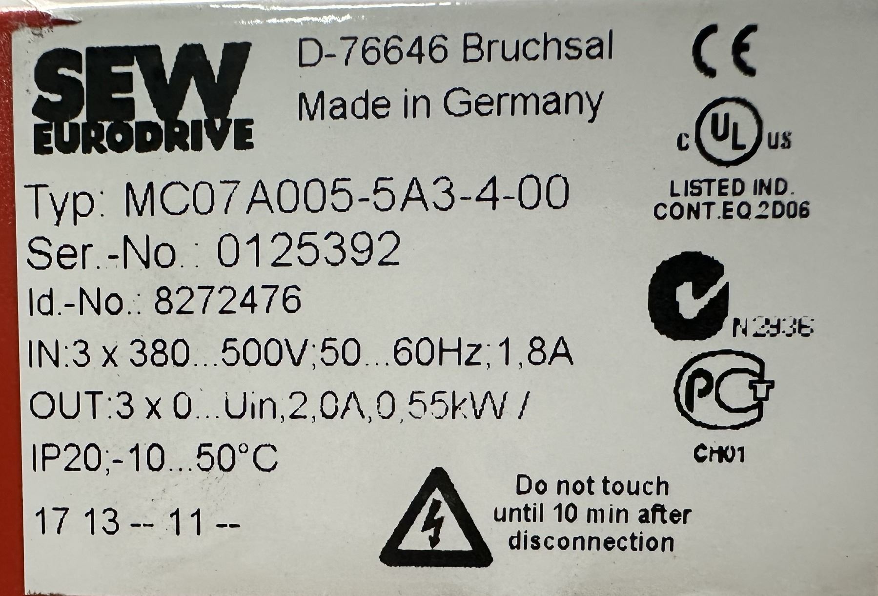 Sew Eurodrive #8272476 Type MC07A005-5A3-4-00 Movitrac Inverter