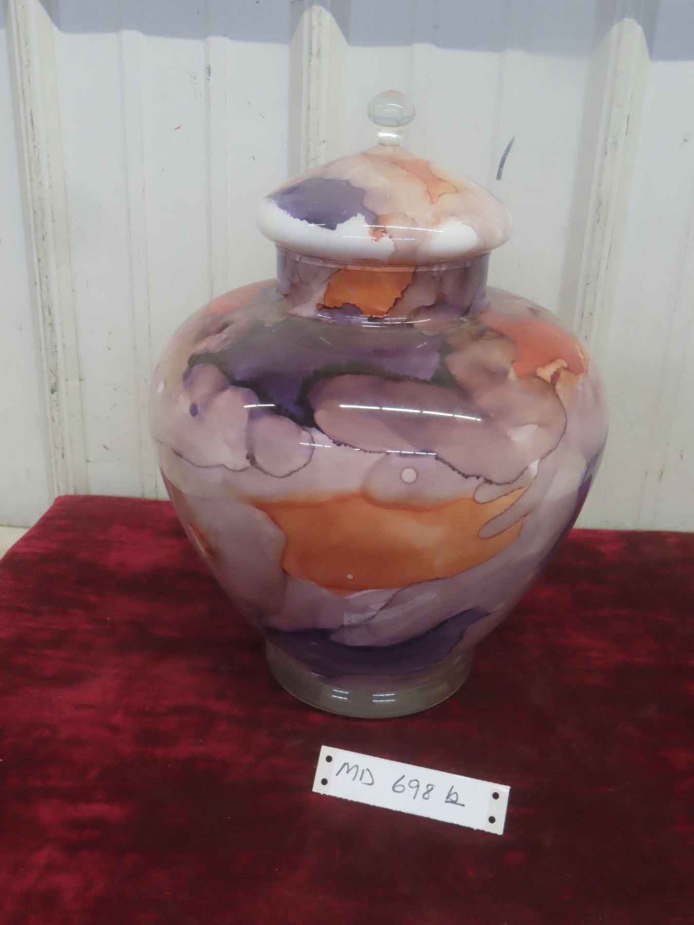 Lot 698 Large Murano Glass Vase with Lid, 14" Tall
