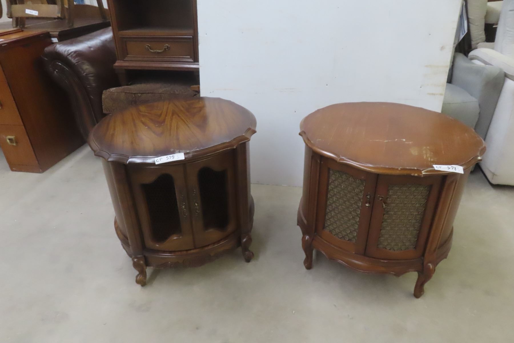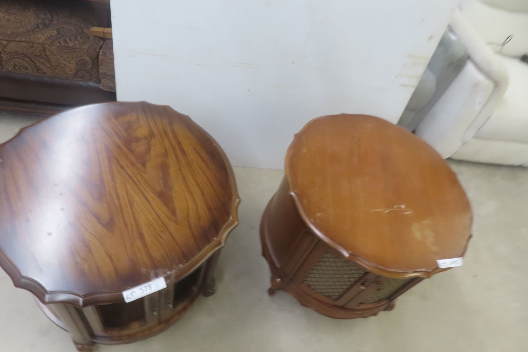 Lot 578 2 Drum End Tables, 22" Tall, 24½" Diameter