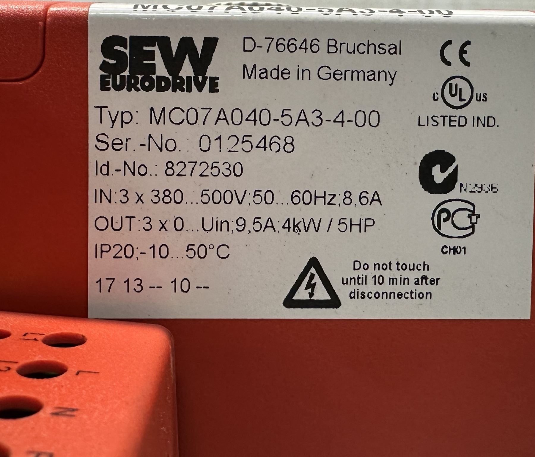 Lot 17 (5) Sew Eurodrive #8272530Type MC07A040-5A3-4-00 Movitrac Inverters