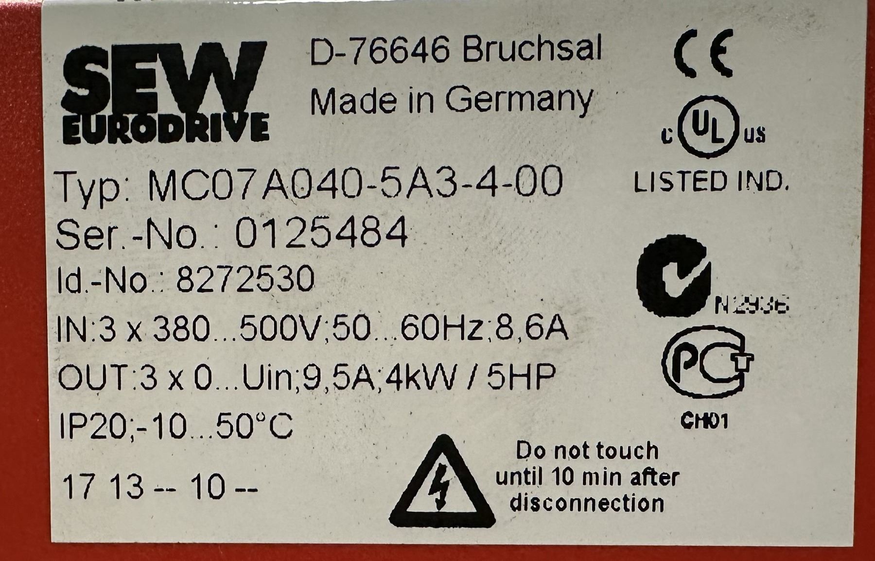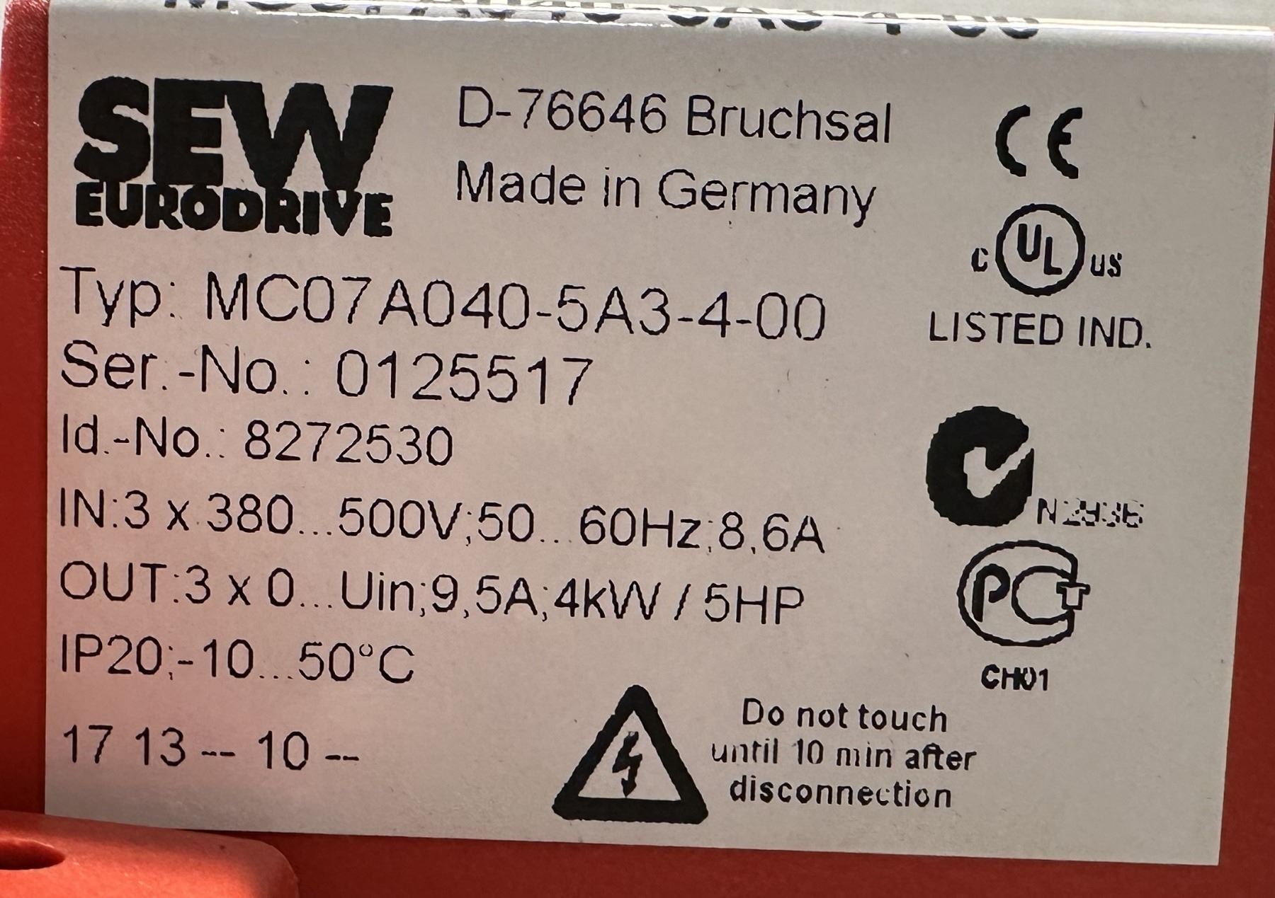 Lot 427 (2) Sew Eurodrive #8272530Type MC07A040-5A3-4-00 Movitrac Inverters