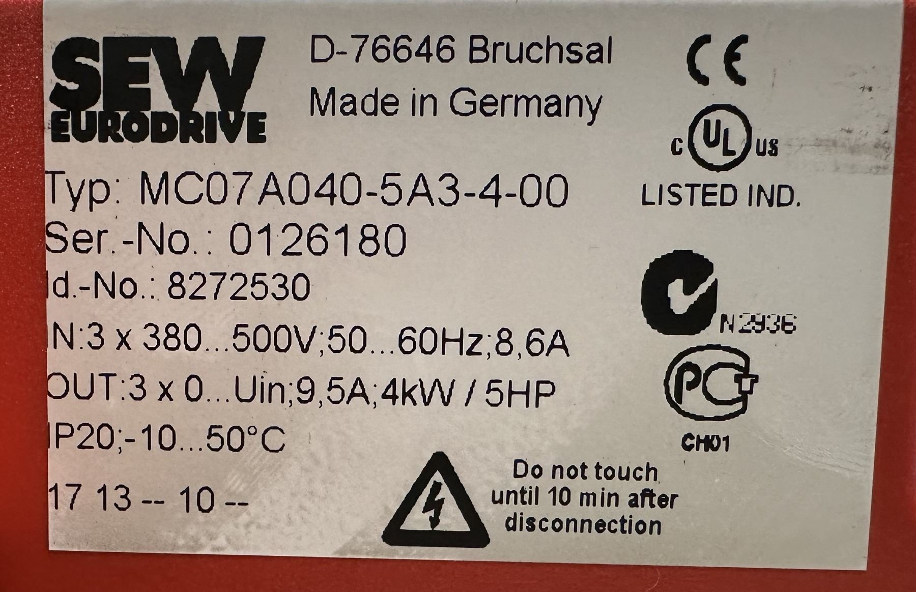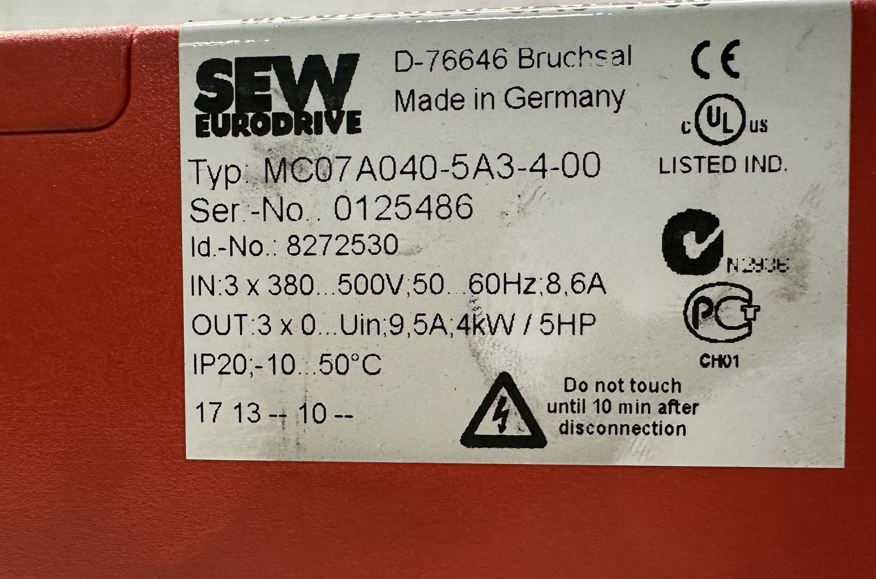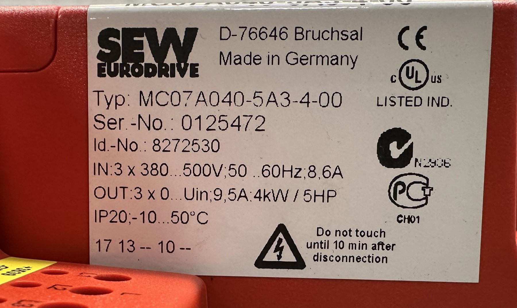 Lot 18 (3) Sew Eurodrive #8272530Type MC07A040-5A3-4-00 Movitrac Inverters