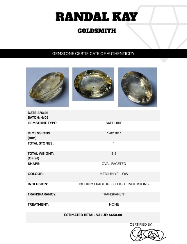 Lot 3 Yellow Sapphire (6.5 ct, 14×10×7 mm)