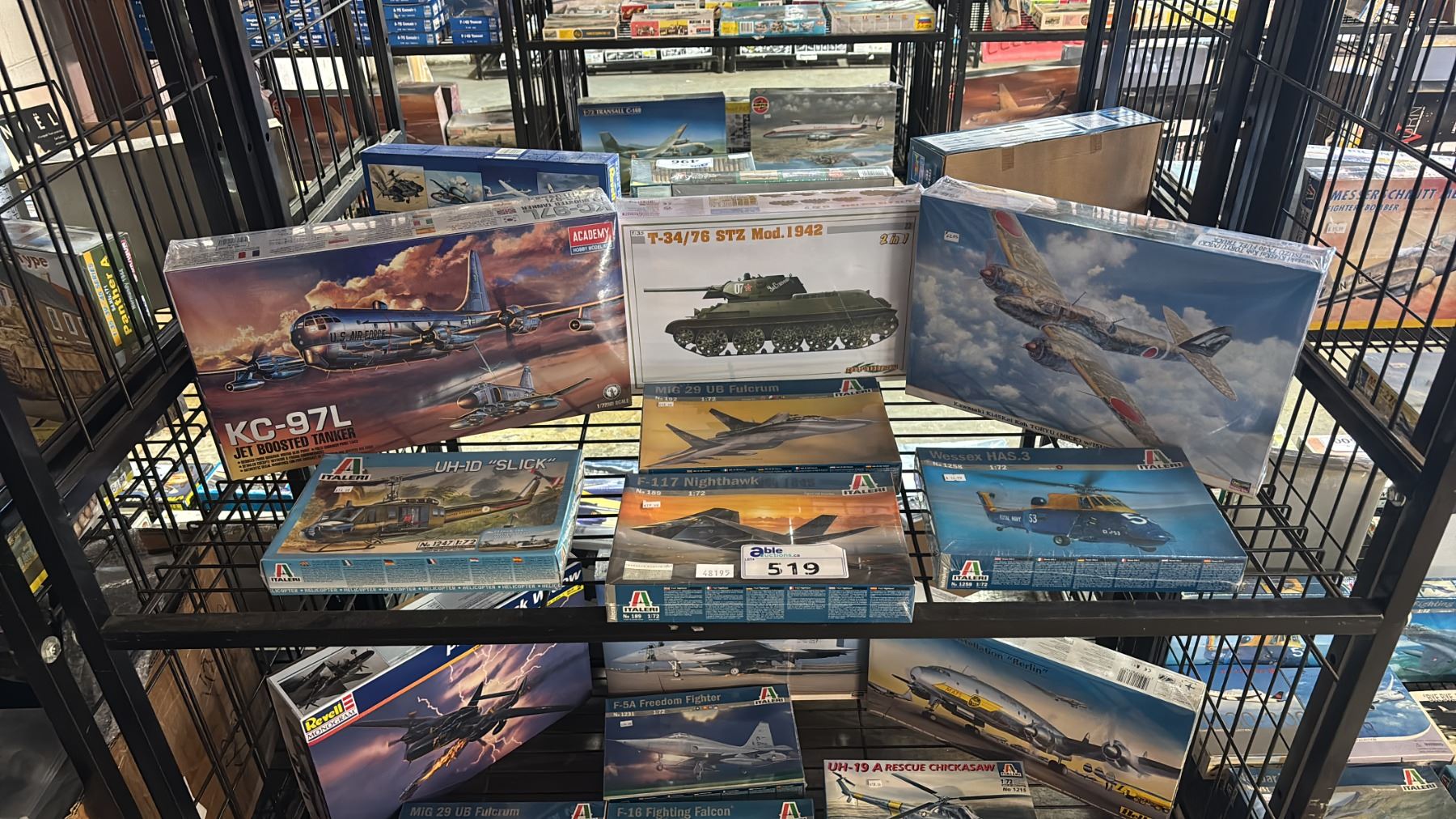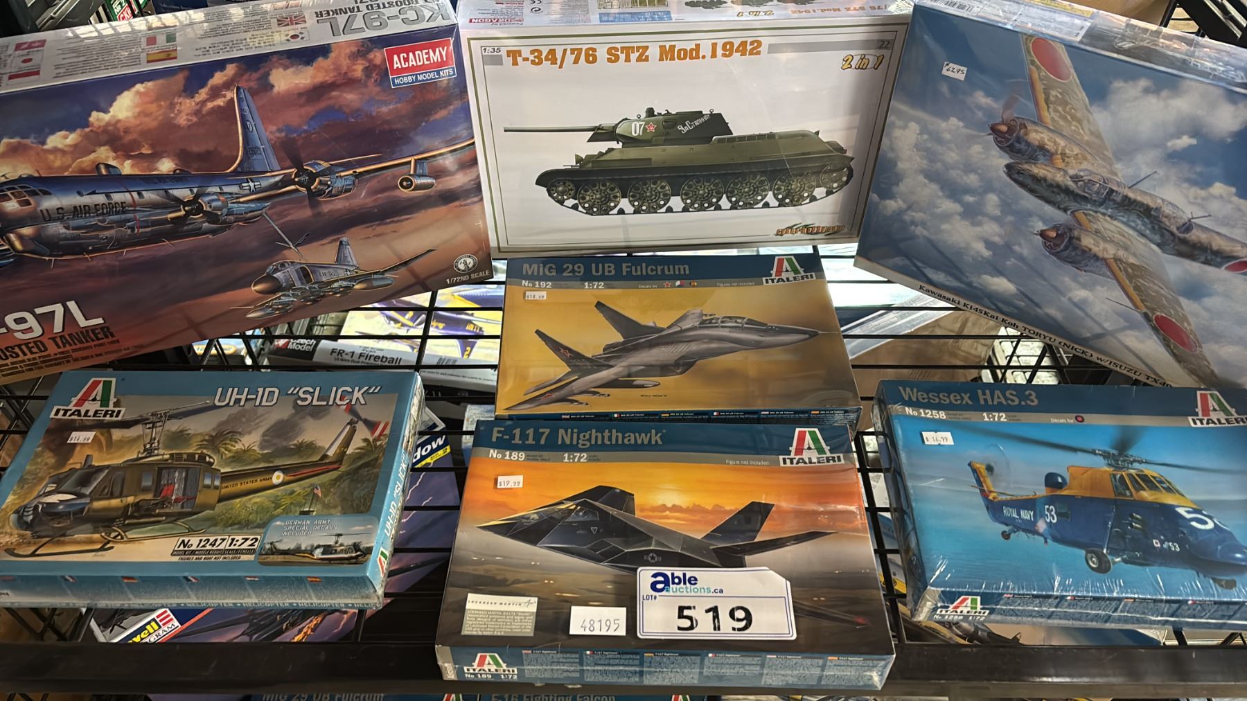 Lot 519 SHELF OF ASSORTED AIRPLANE, HELICOPTER & TANK MODEL KITS