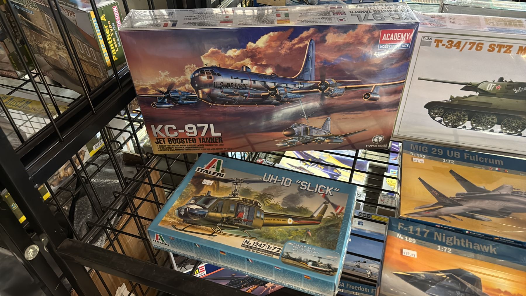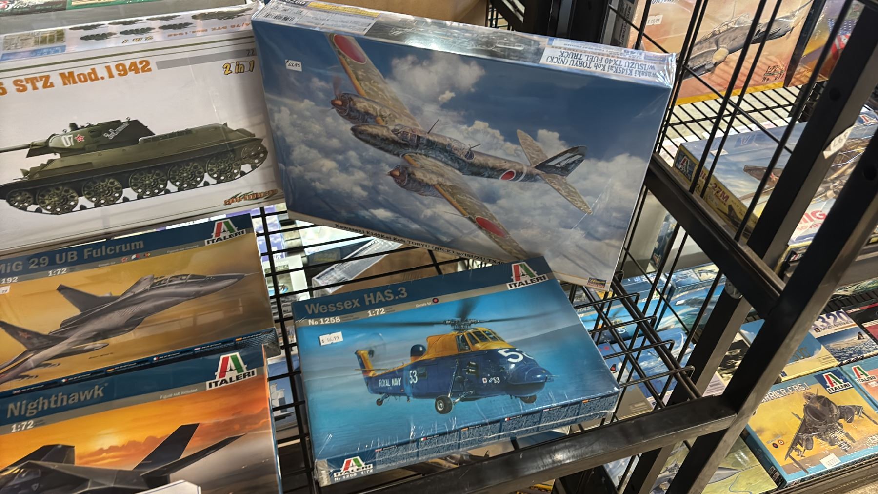 SHELF OF ASSORTED AIRPLANE, HELICOPTER & TANK MODEL KITS