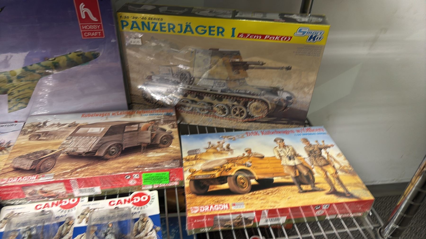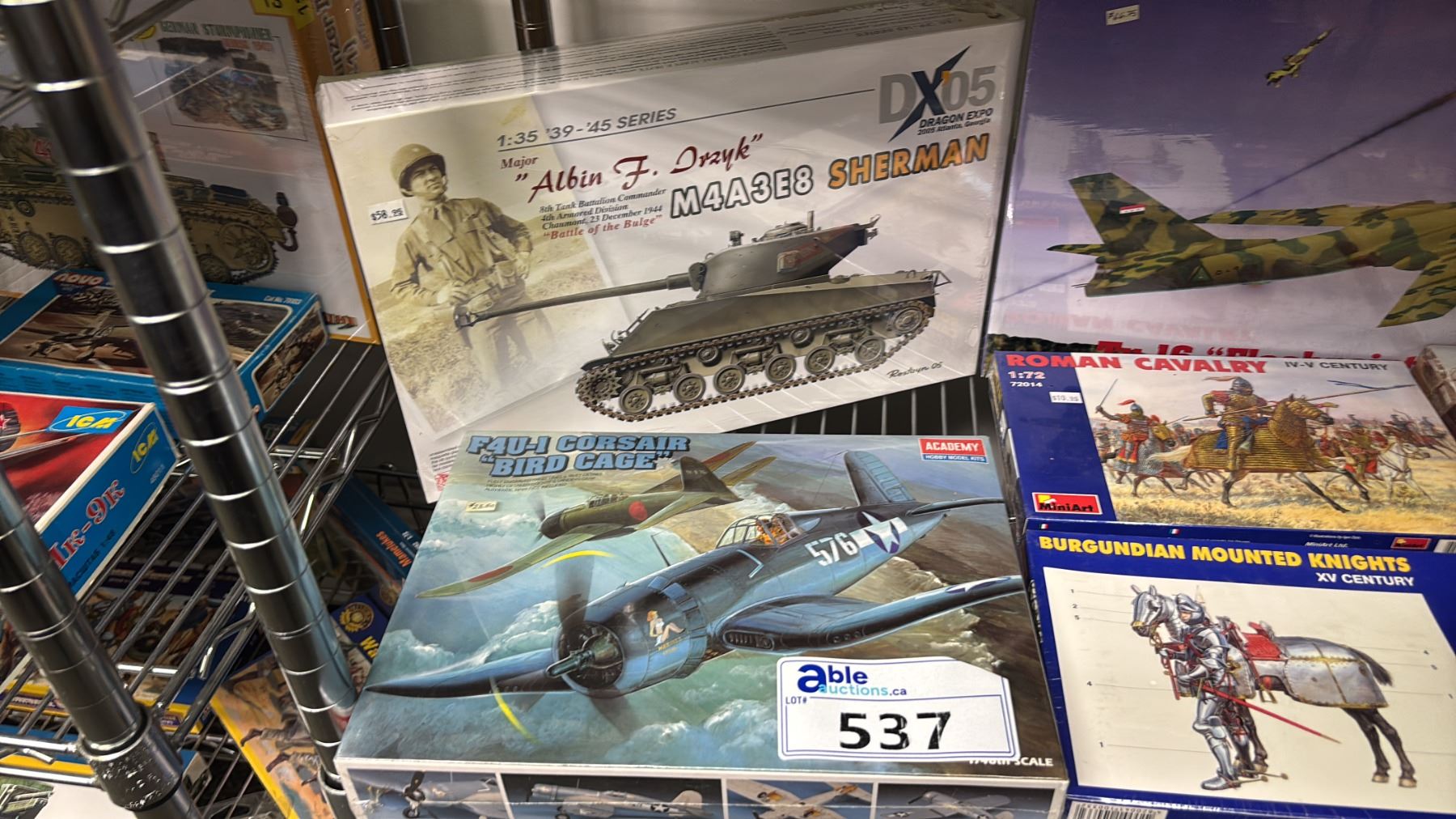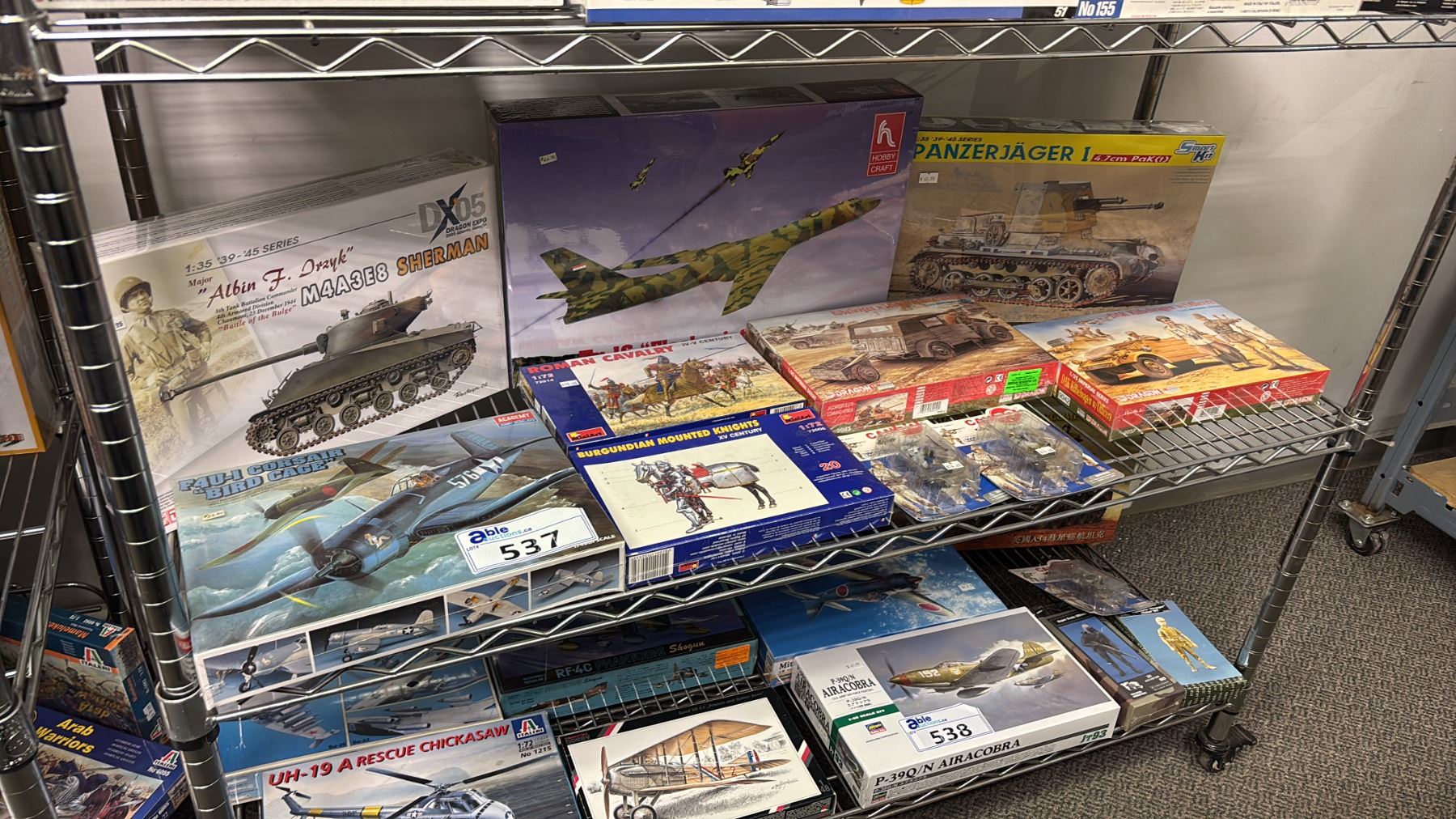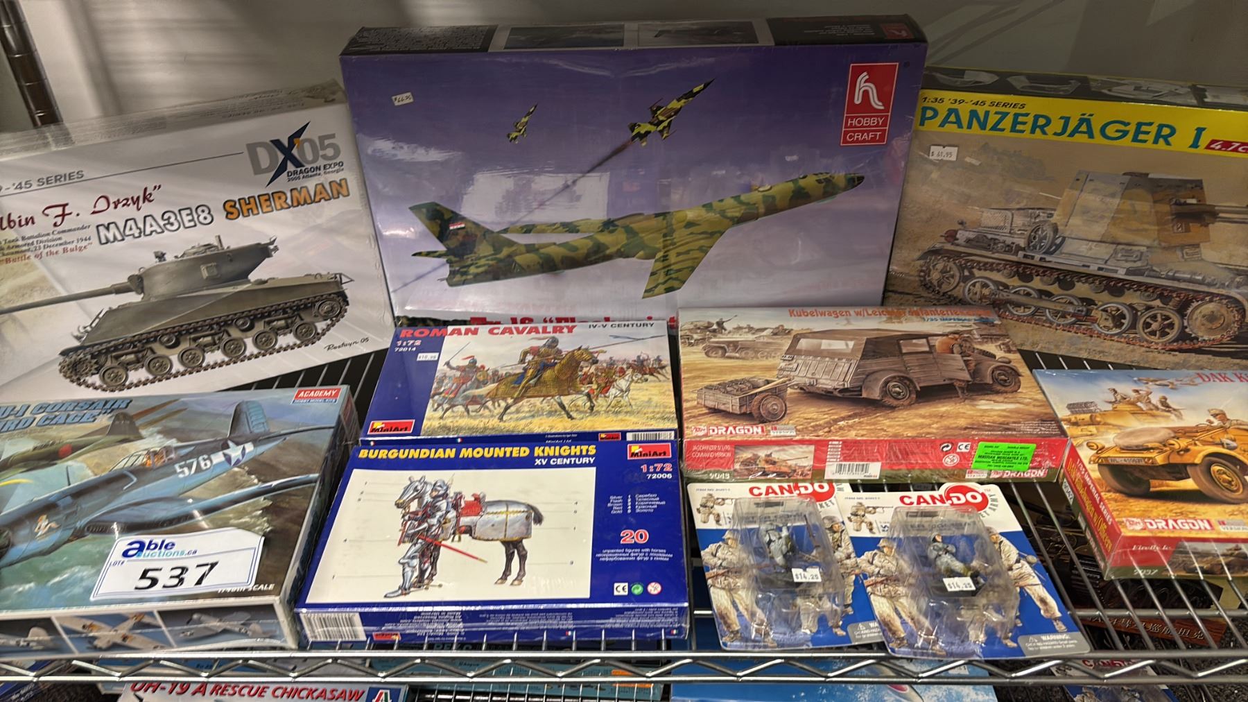 Lot 537 SHELF OF ASSORTED MODEL KITS: AIRPLANES, TANKS, MILITARY VEHICLES & MORE