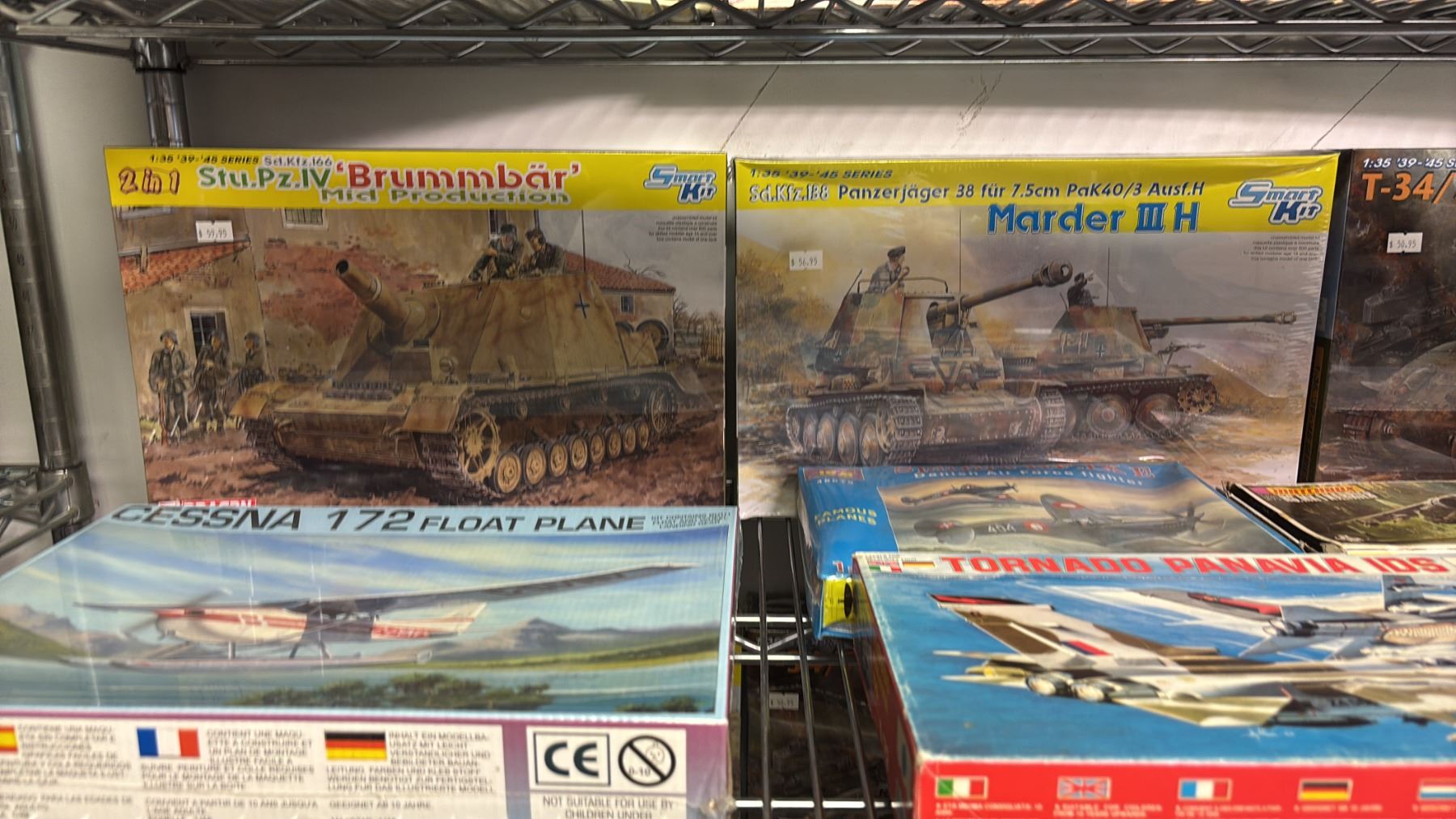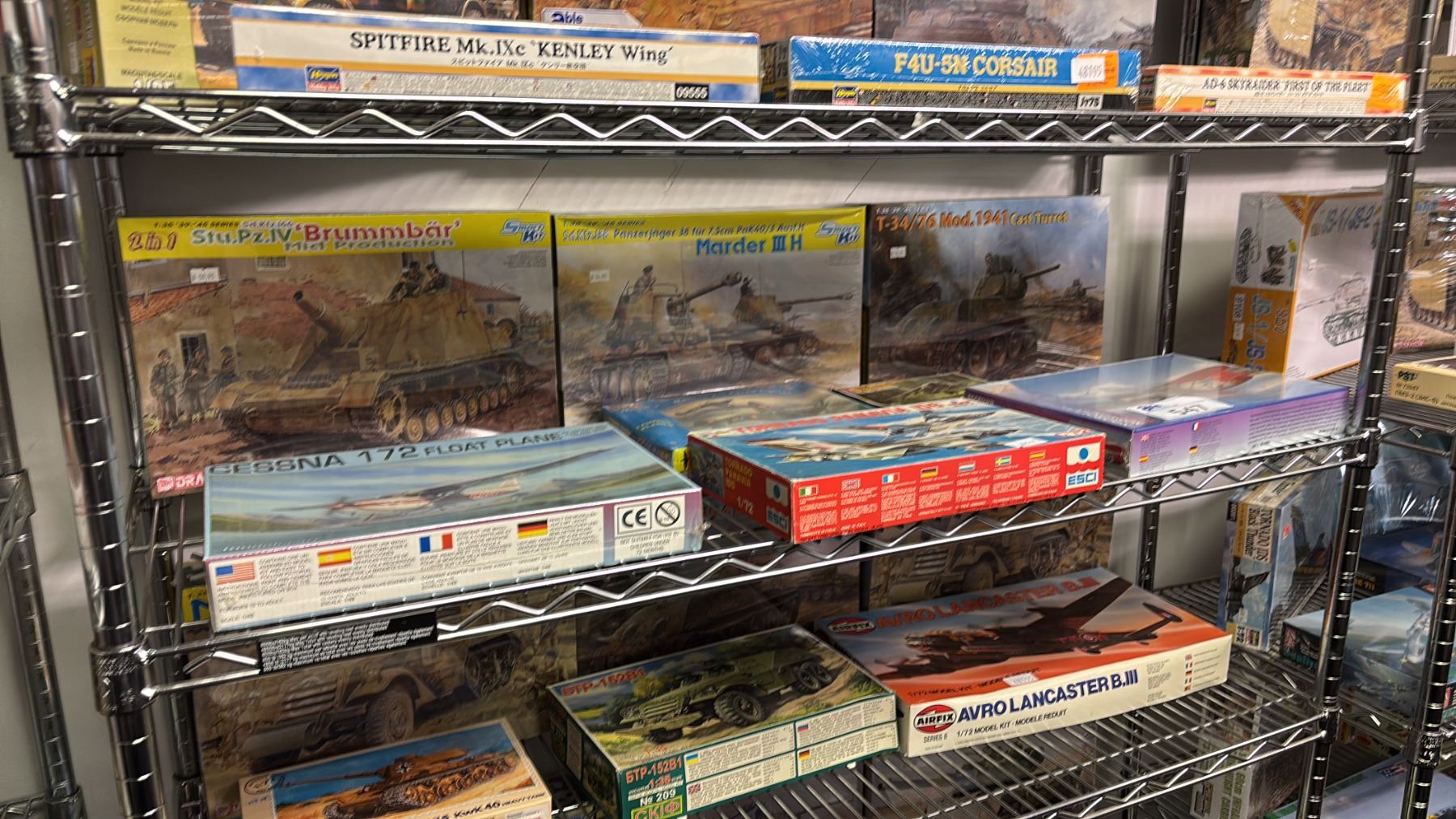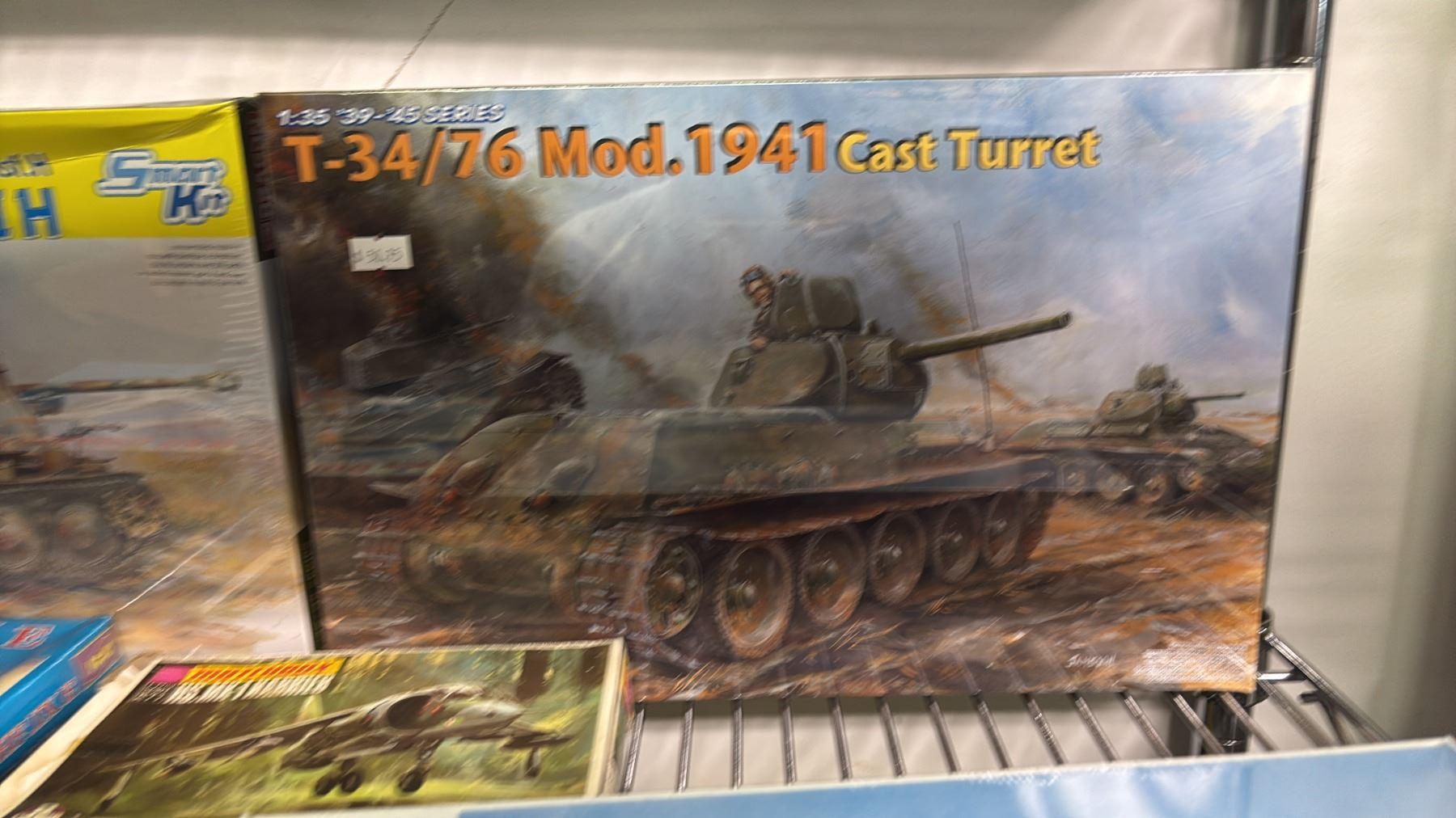 SHELF OF ASSORTED AIRPLANE & TANK MODEL KITS
