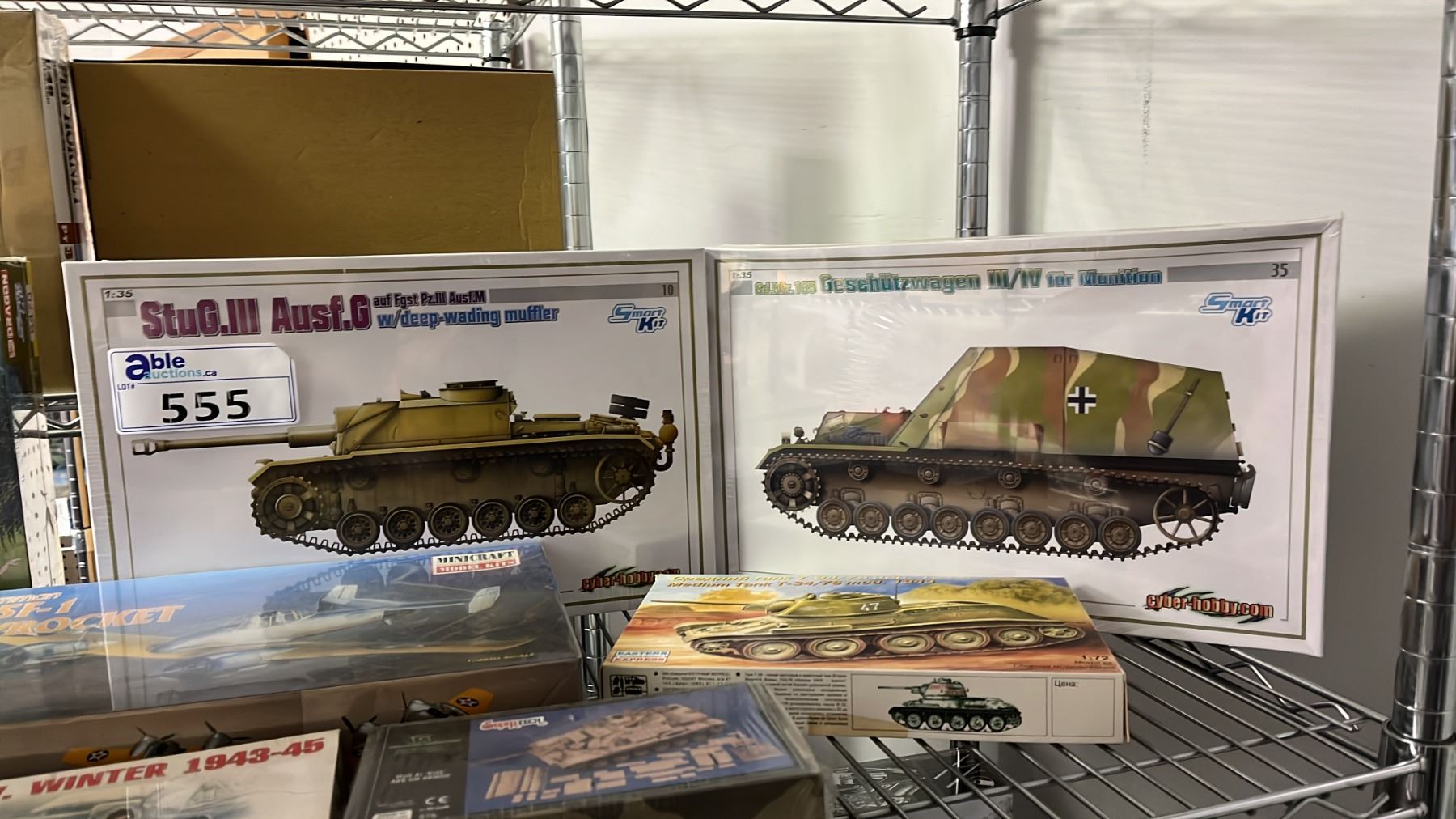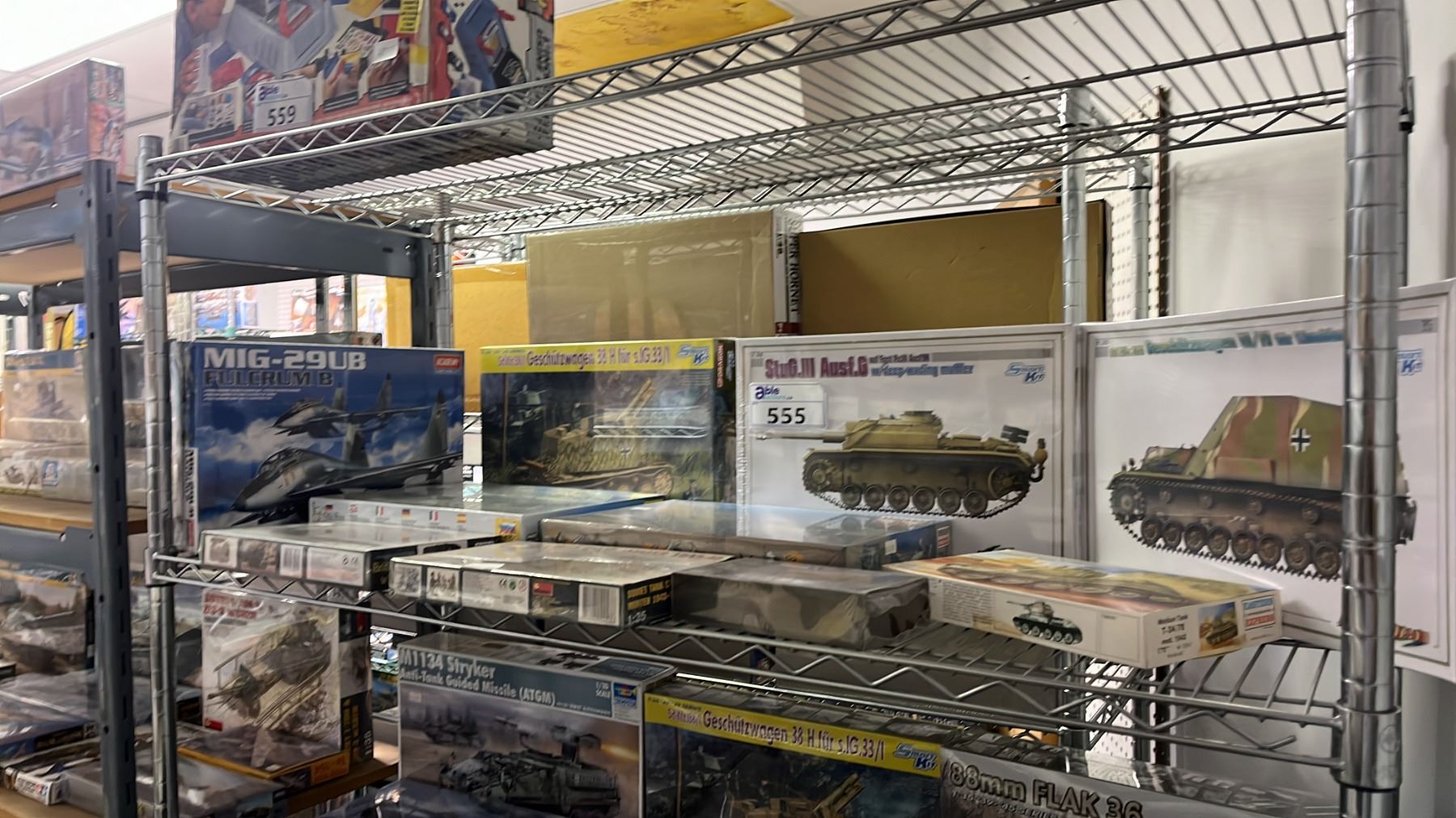 Lot 555 SHELF OF ASSORTED AIRPLANE & TANK MODEL KITS