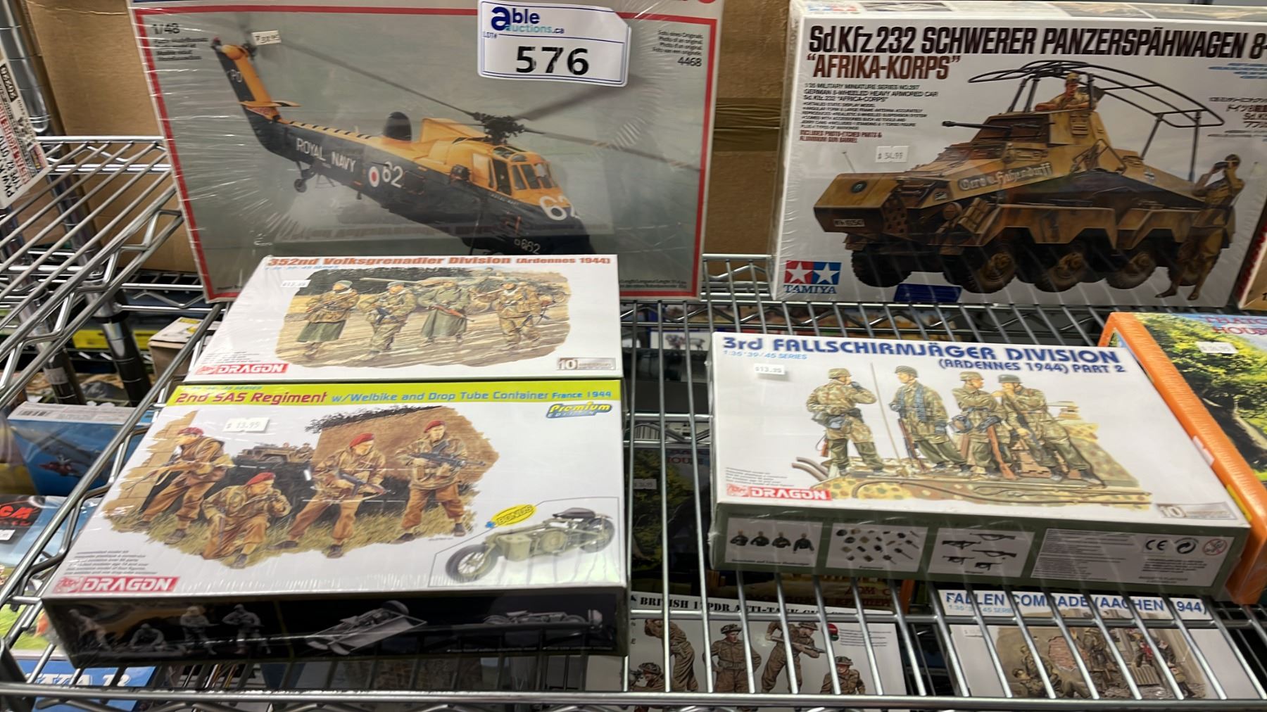Lot 576 SHELF OF ASSORTED MODEL KITS: BUILDINGS & ASSORTED MILITARY FIGURE SETS