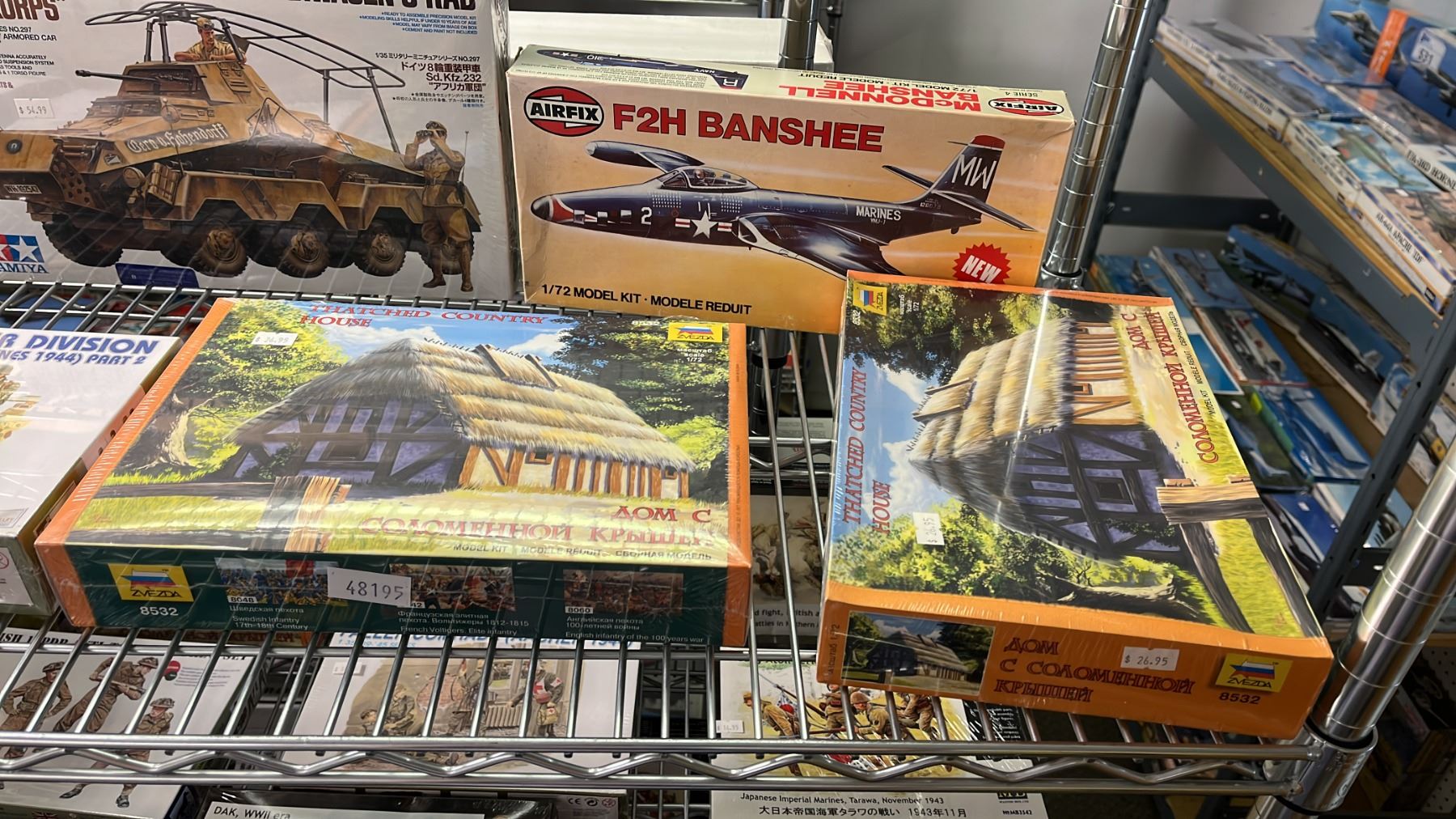 SHELF OF ASSORTED MODEL KITS: BUILDINGS & ASSORTED MILITARY FIGURE SETS