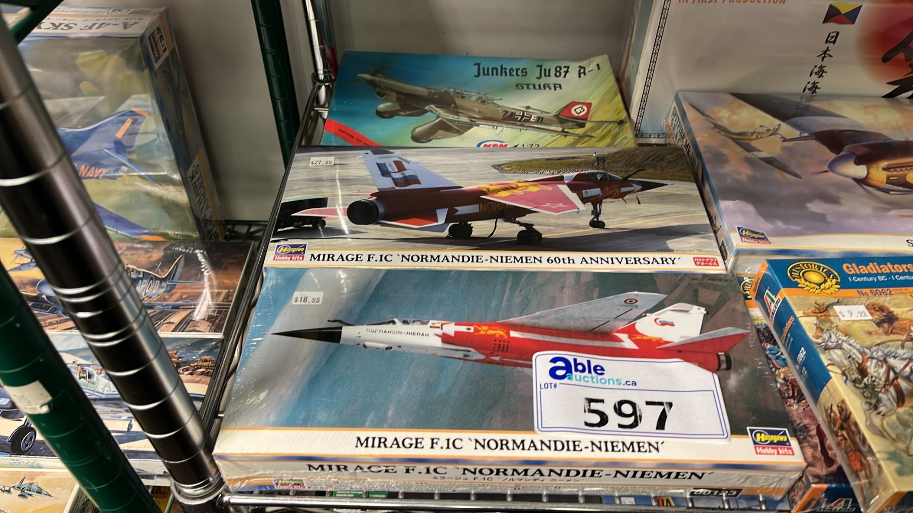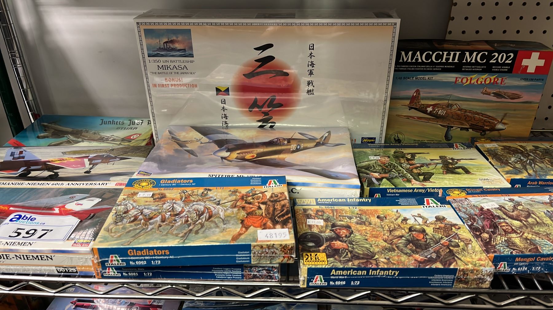 Lot 597 SHELF OF ASSORTED MODEL KITS: BATTLESHIP, AIRPLANES & ASSORTED FIGURE KITS