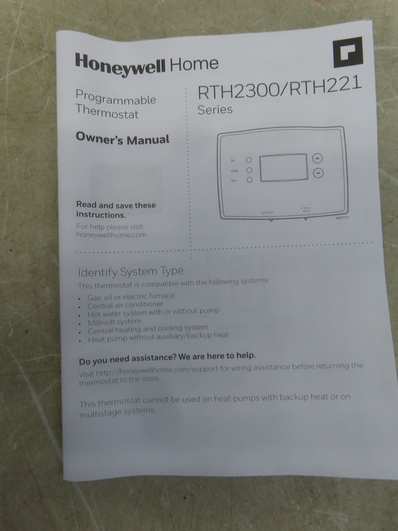 Lot 957 New Honeywell Programmable Thermostat – Model RTH221B