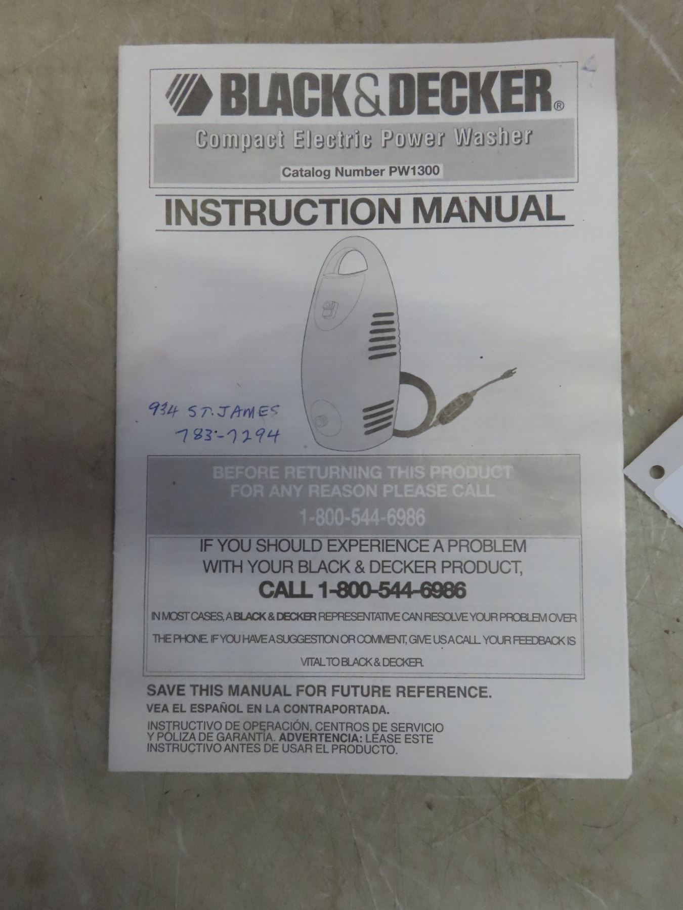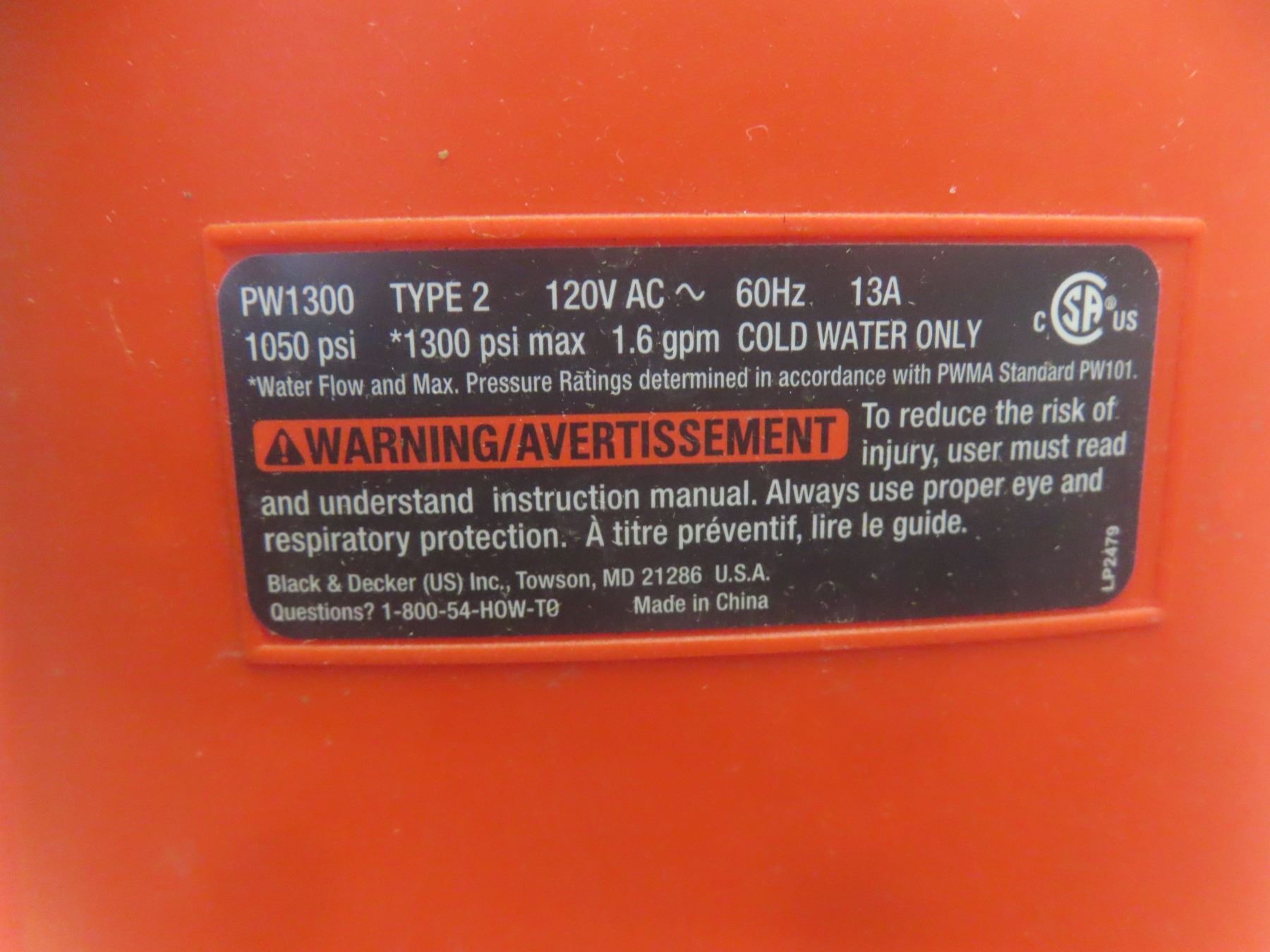 Lot 879 Black and Decker Compact Electric Pressure Washer with Accessories