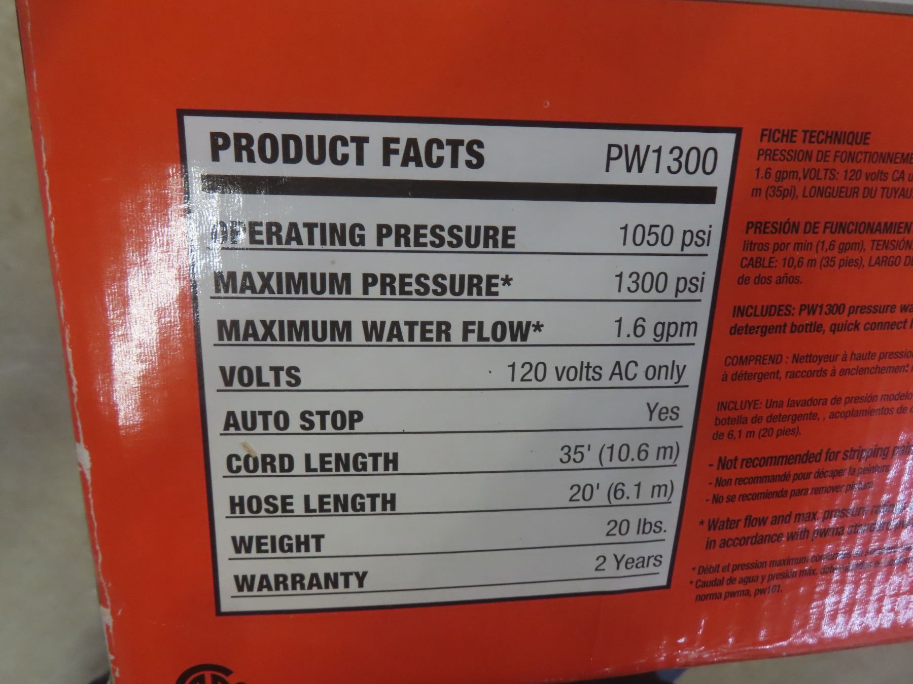 Black and Decker Compact Electric Pressure Washer with Accessories, 1300 PSI