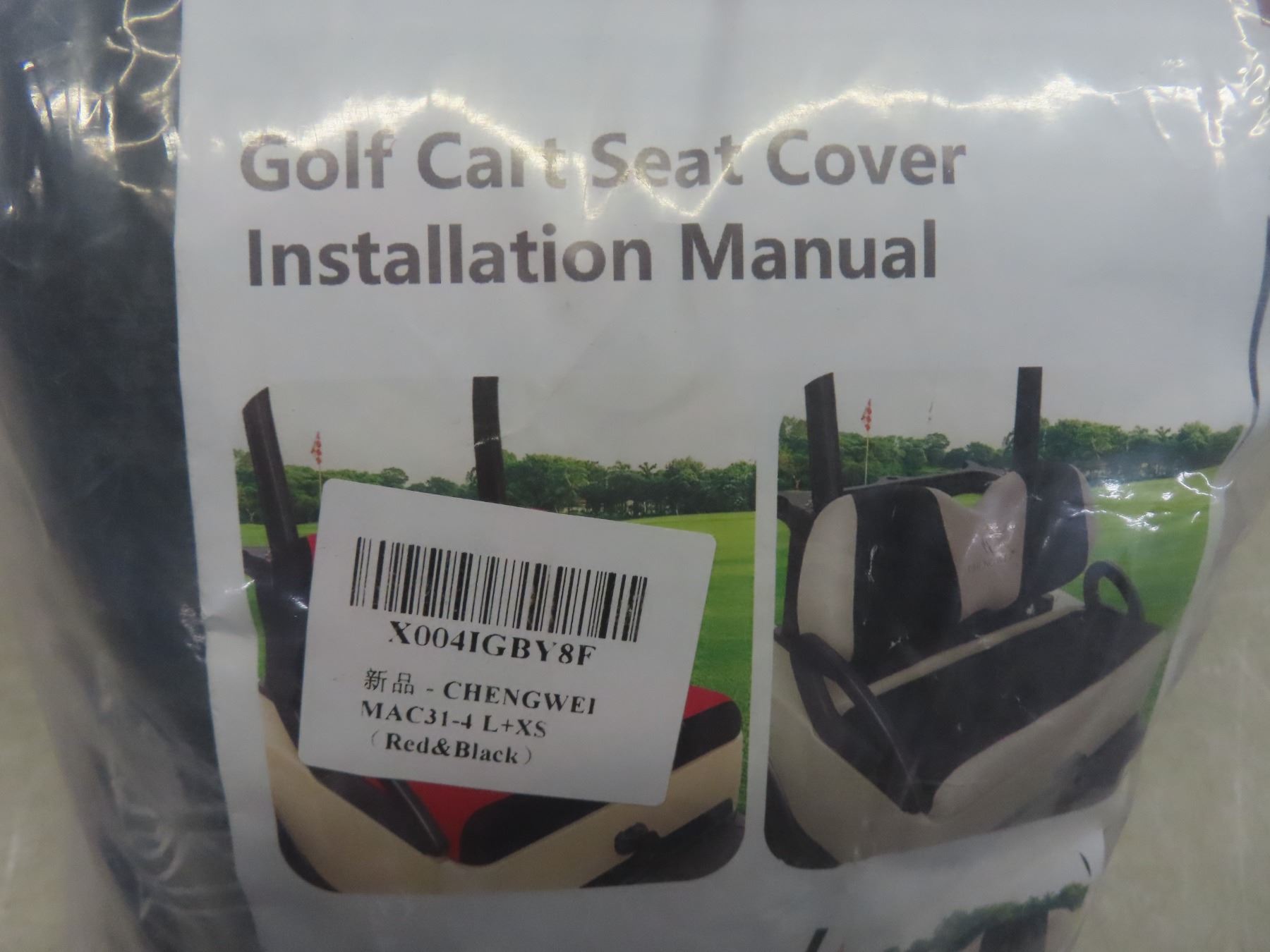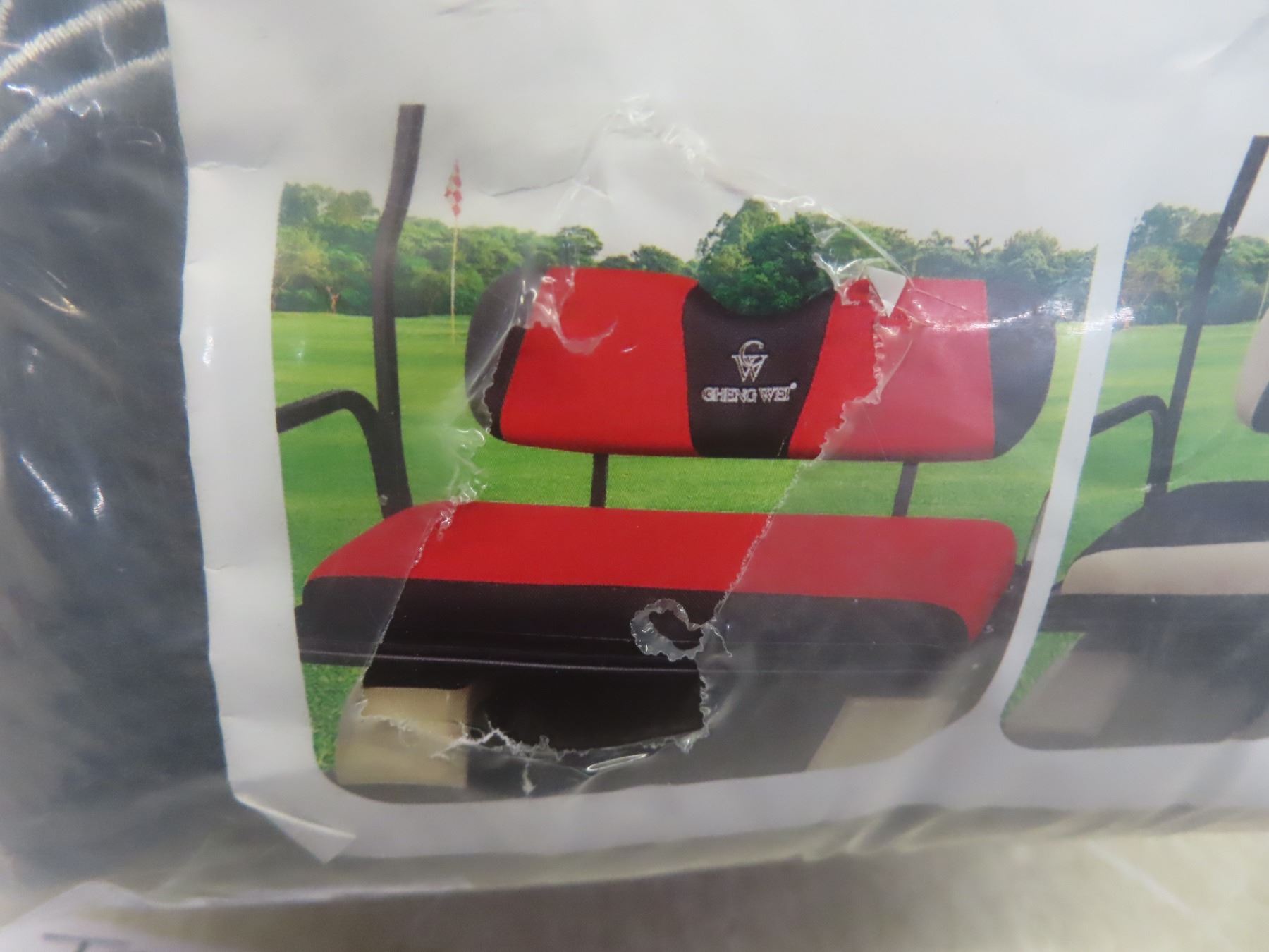 Lot 897 New Golf Cart Seat Covers, Red and Black, Front and Back