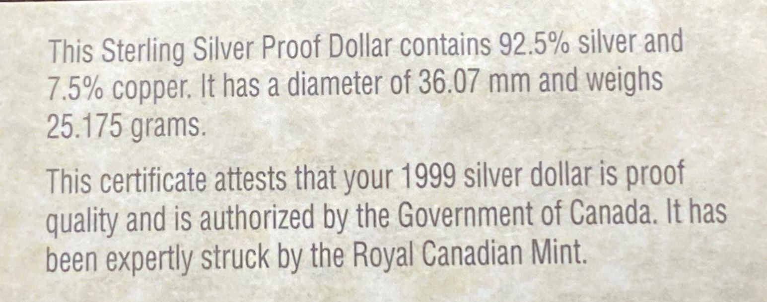 Lot 61 1999 Proof Coin 92.5% Silver 25.175 Grams