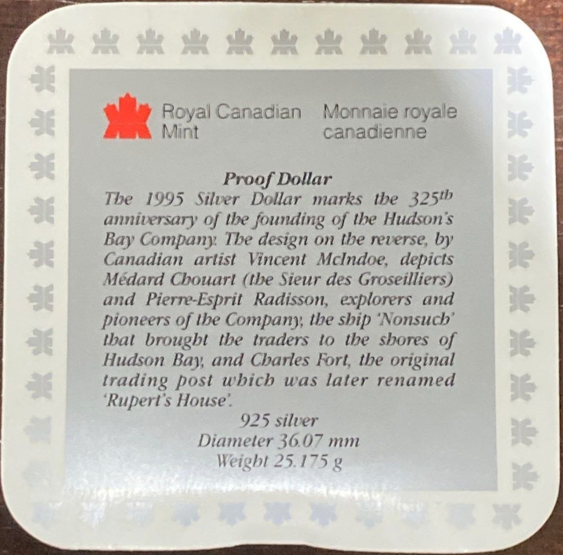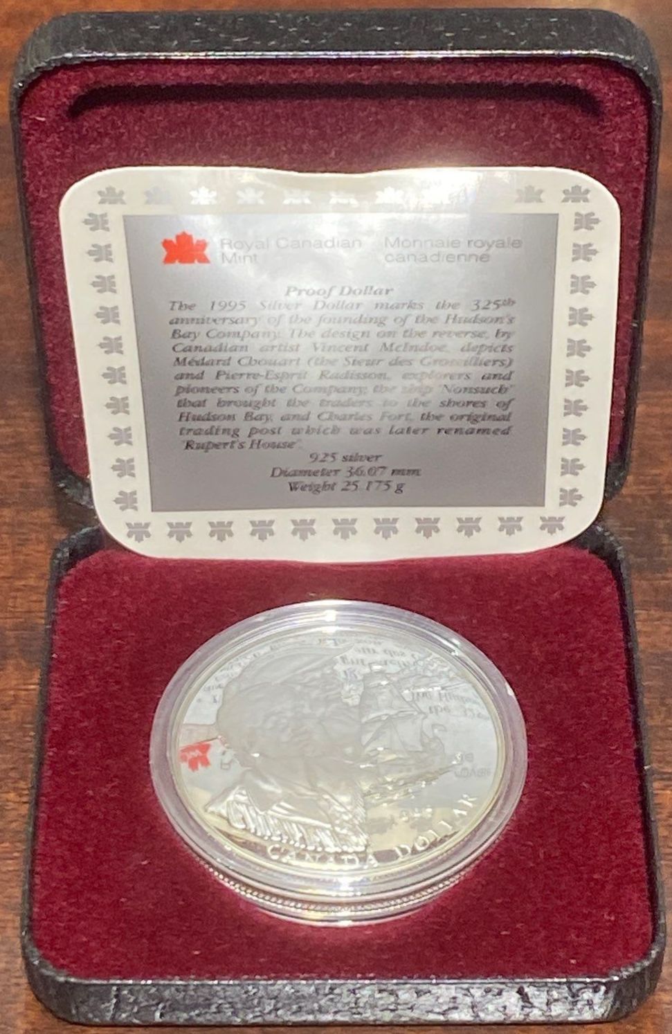 Lot 65 1995 Hudson's Bay Company Proof Coin 92.5% Silver 25.175 Grams