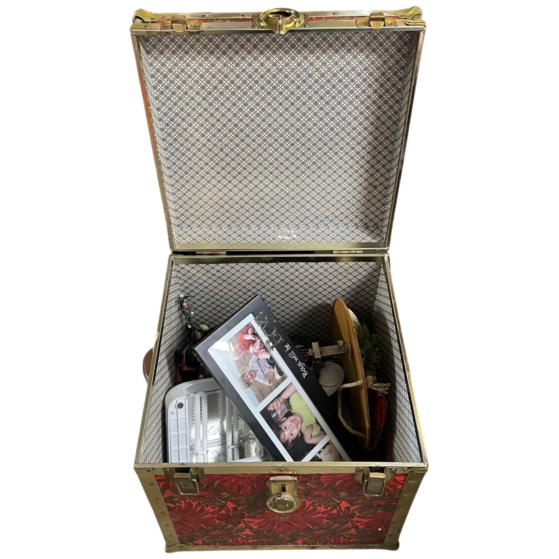 Chinese Square Storage Trunk and Contents 18.5x18.5x18.5"