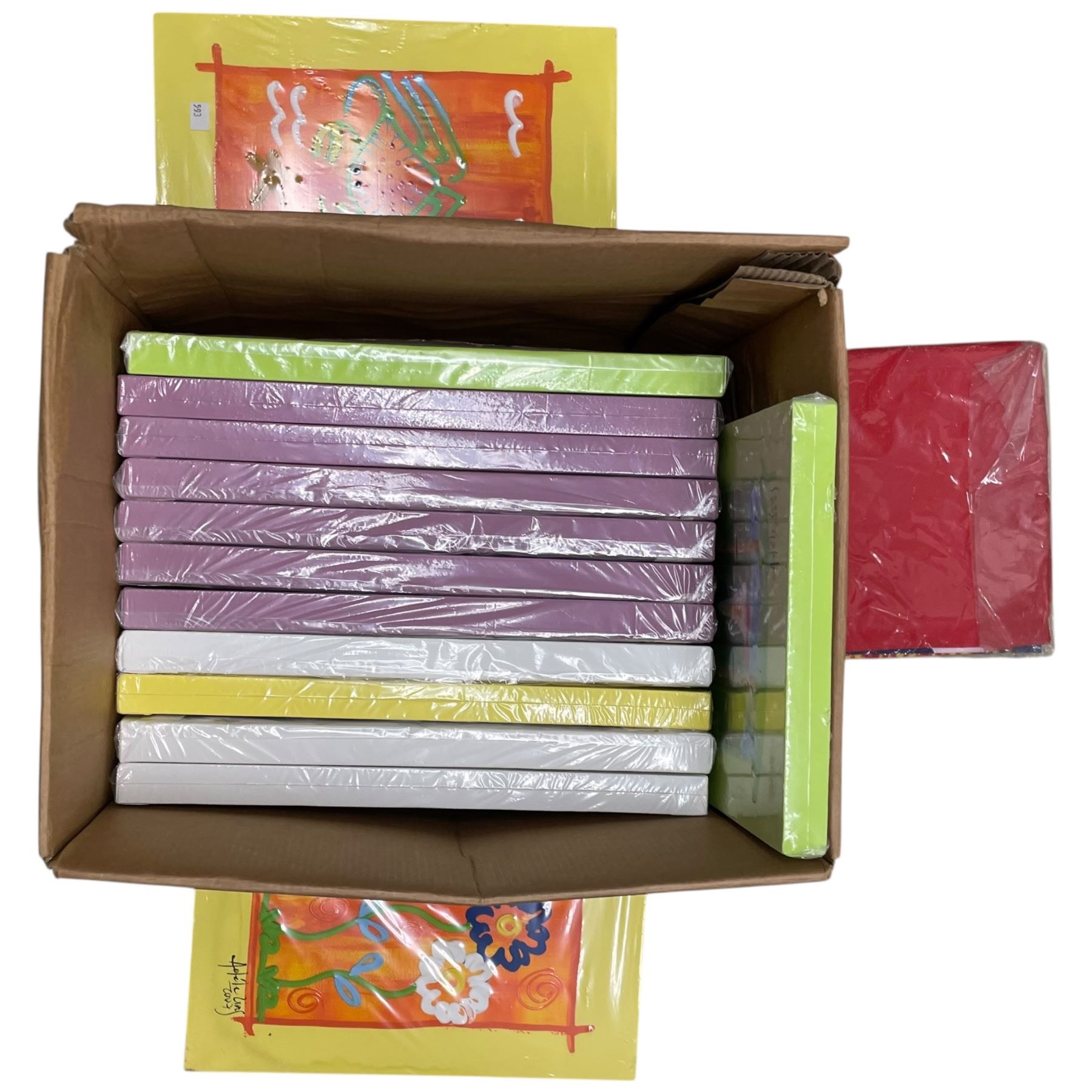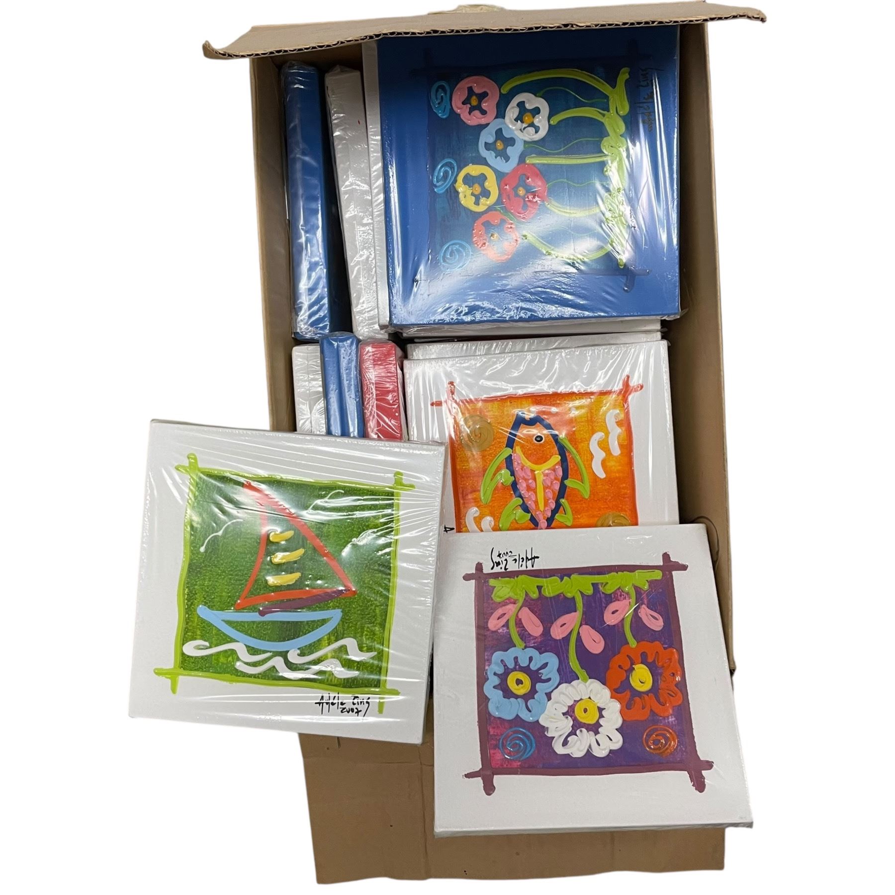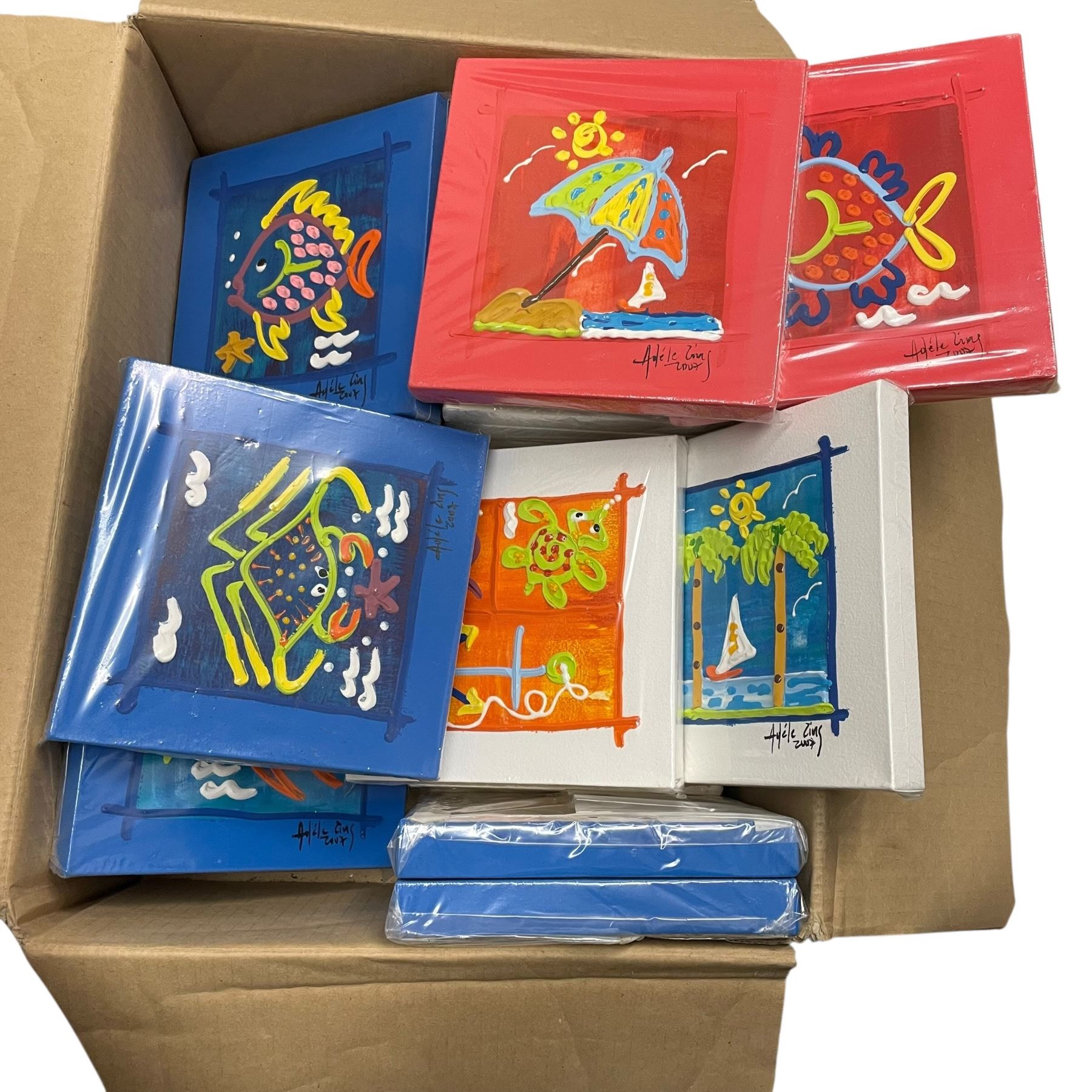 Lot 1169 3 Boxes Small Adele Ling 2007 8x8" Paintings and Shelf Contents