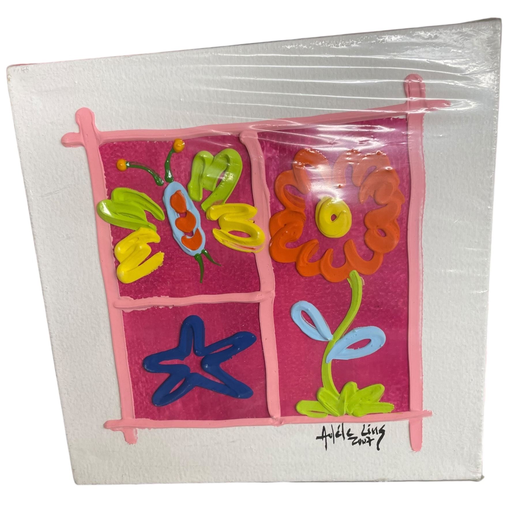 3 Boxes Small Adele Ling 2007 8x8" Paintings and Shelf Contents