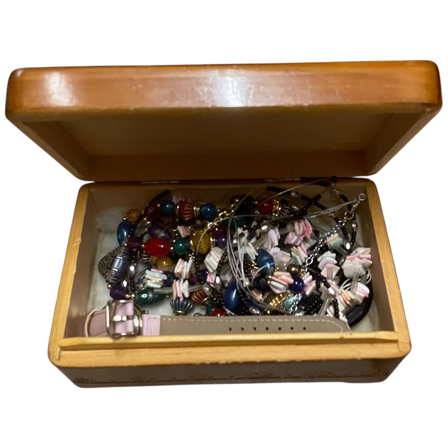 Japanese Music Box, Box of Shells and Jewelry Box with Jewelry