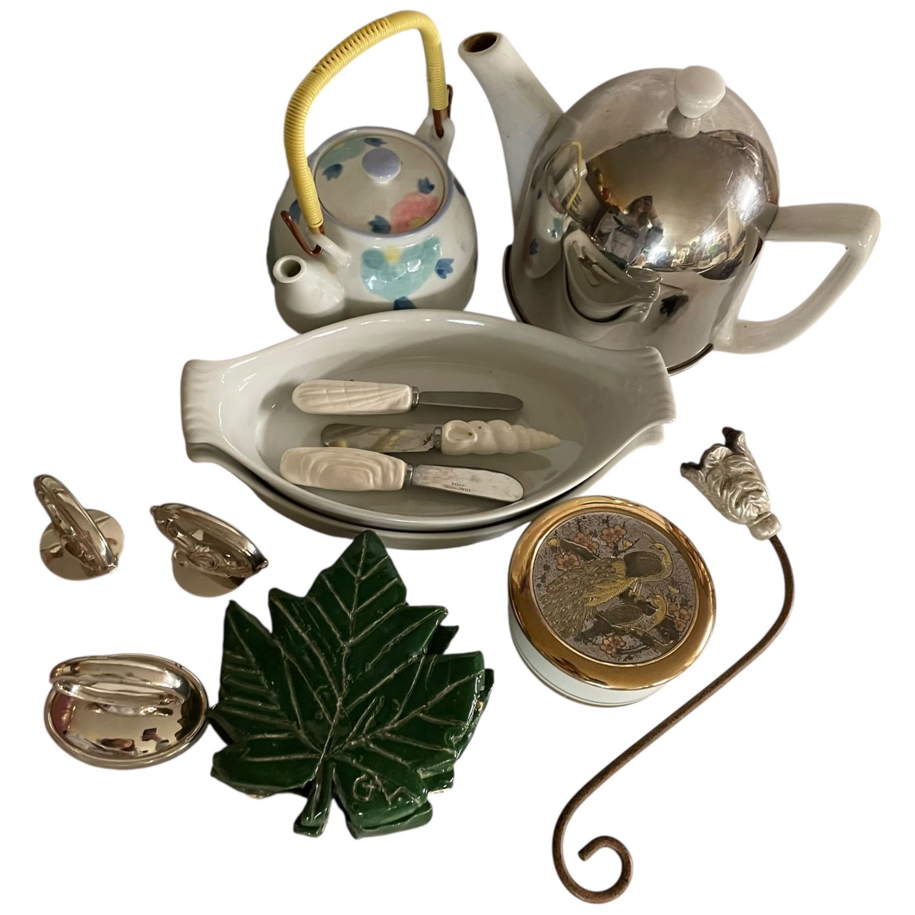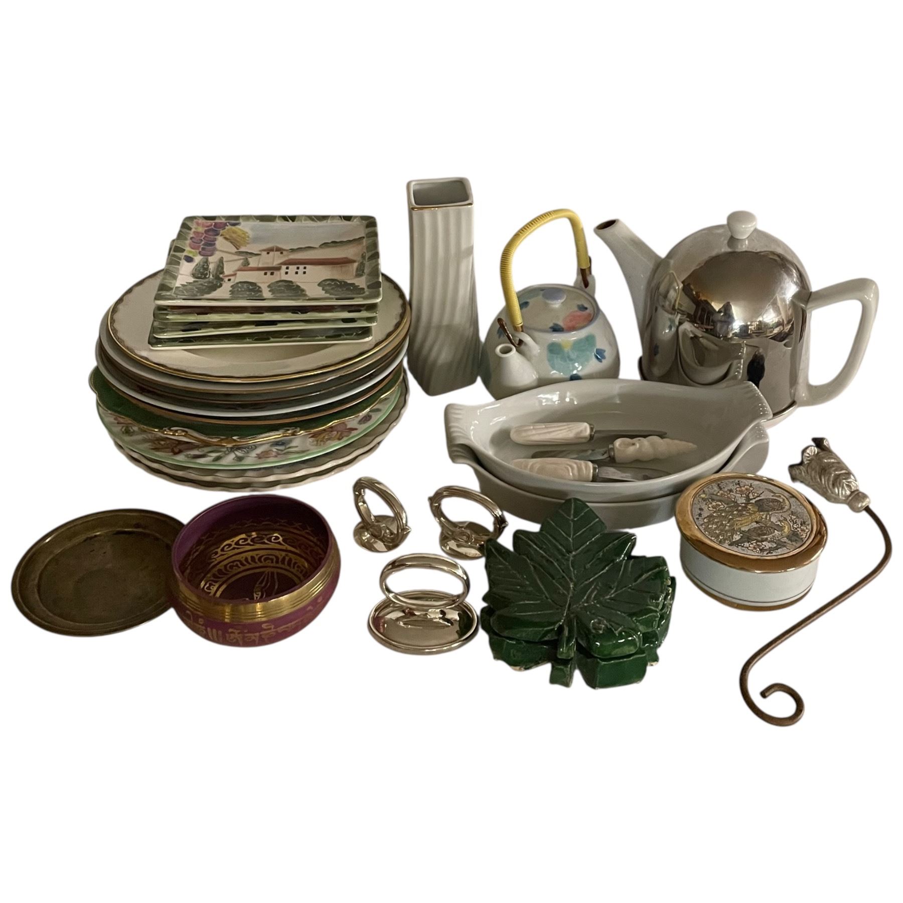 Mixed Decorative Items: Porcelain, Kettle, Plates and More