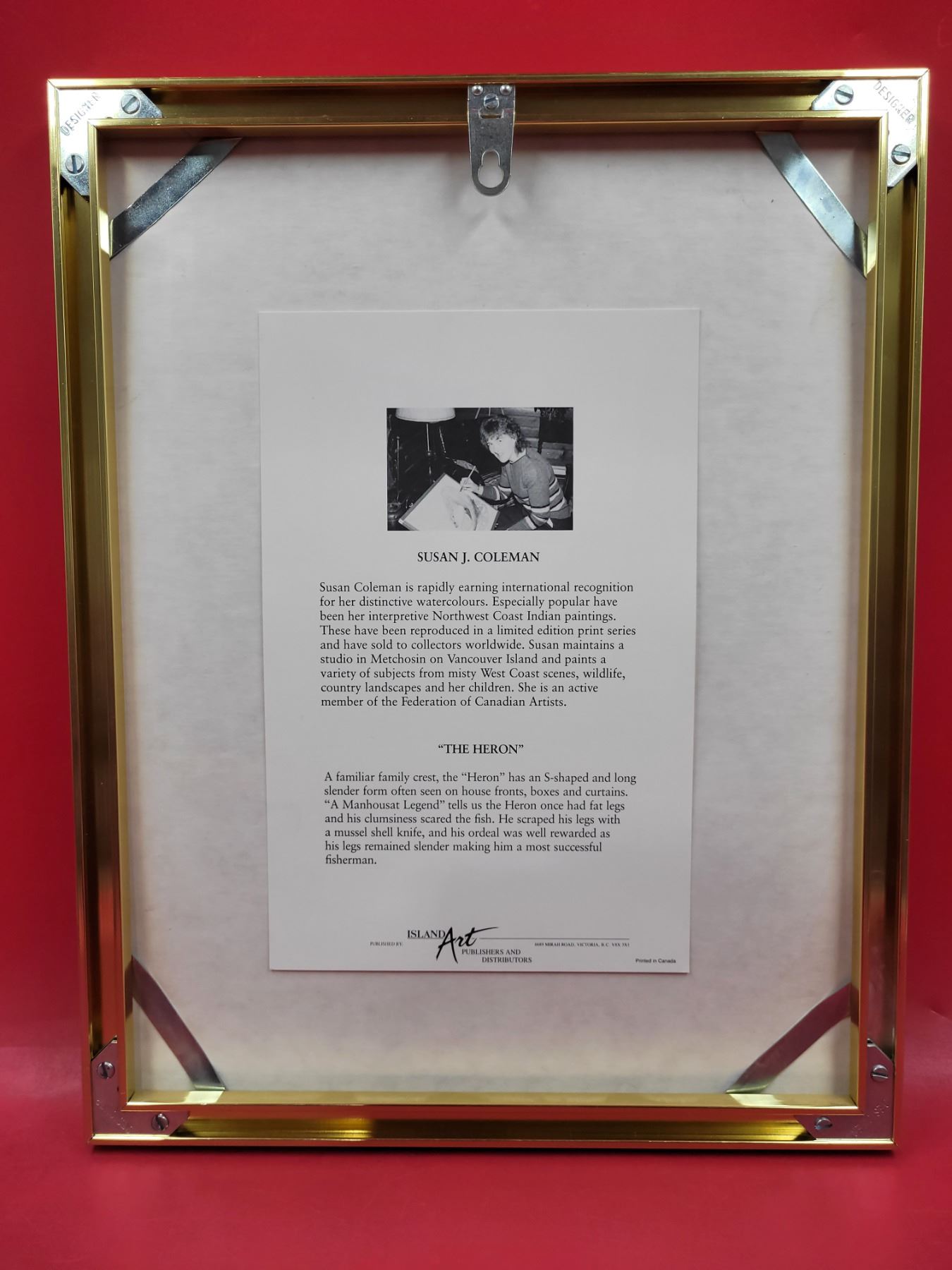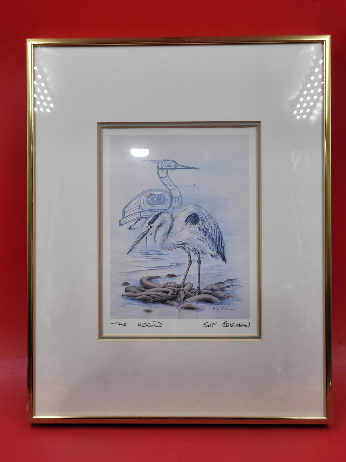 Lot 5 Framed & Signed Indigenous "The Heron" Print by Sue Coleman