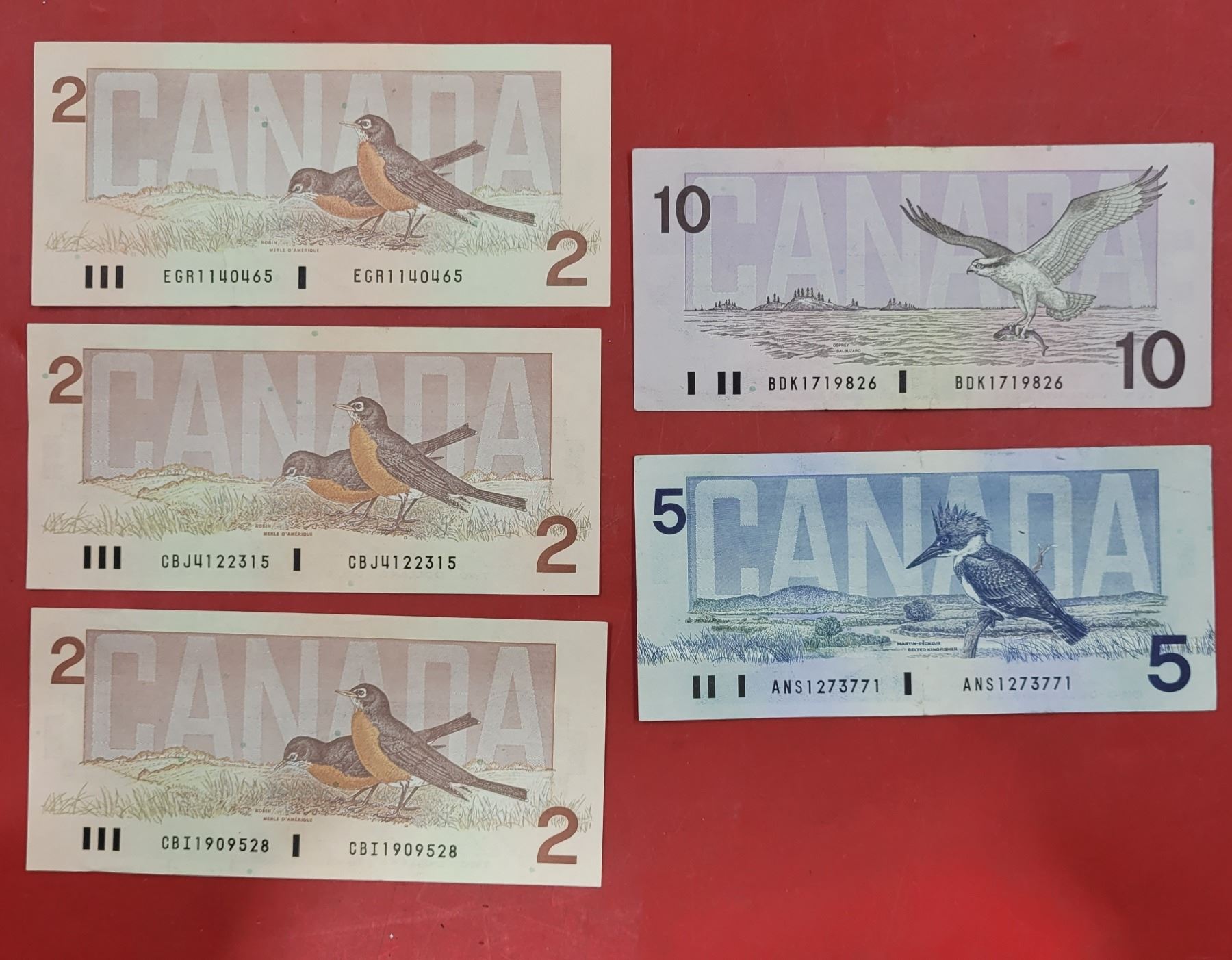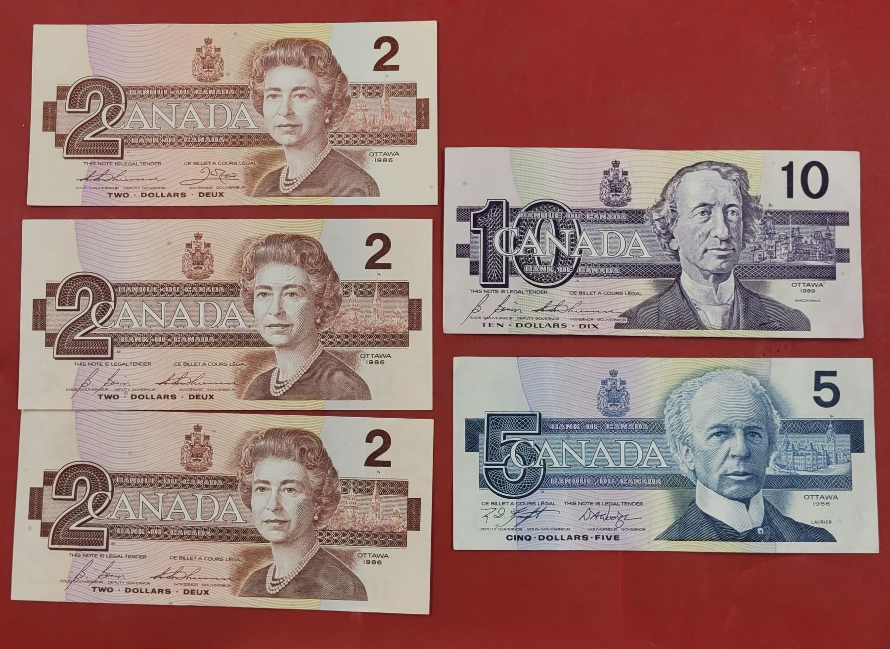Lot of 1980s Canadian Paper Bills ($2, $5, & $10)