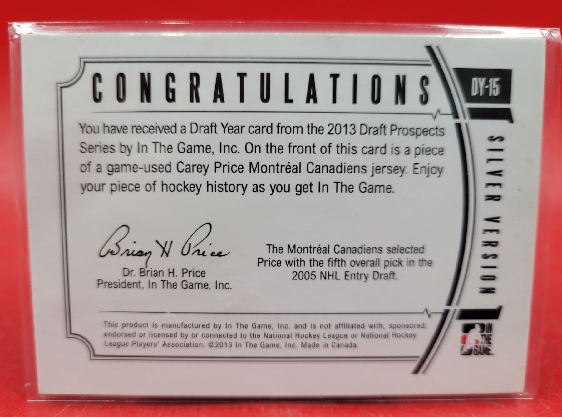 Lot 144 Carey Price Montreal Canadiens Game-Used Hockey Jersey Card