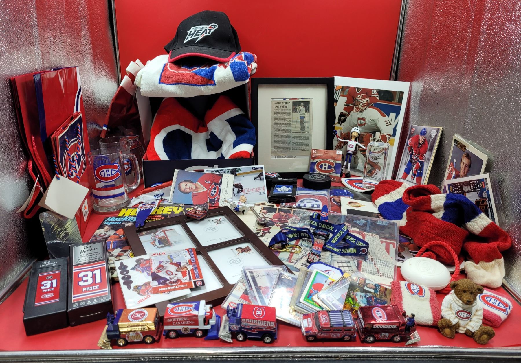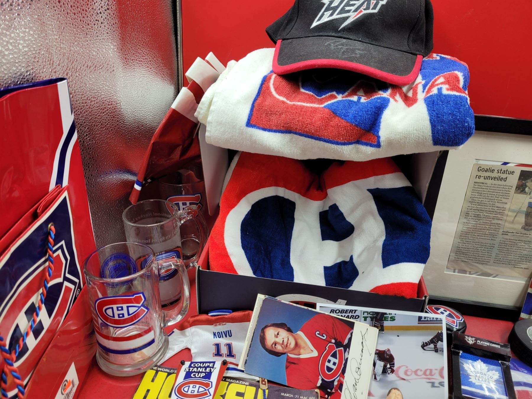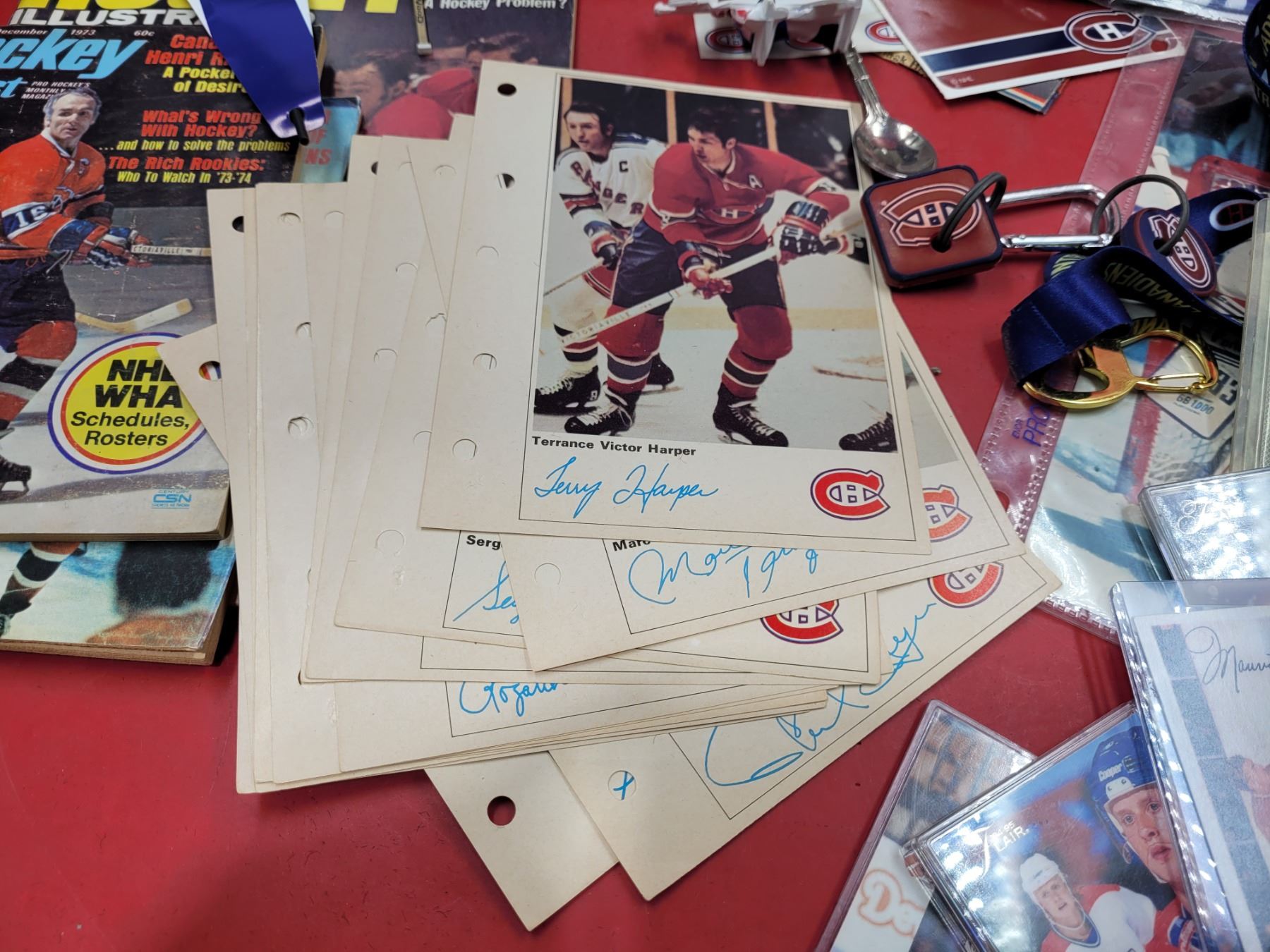 Lot 157 Lot of Montreal Canadiens Collectibles w/ Lanyard, Vehicles, Beer Glasses, Figurine, & More