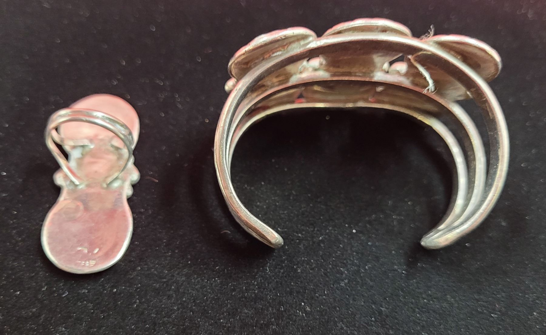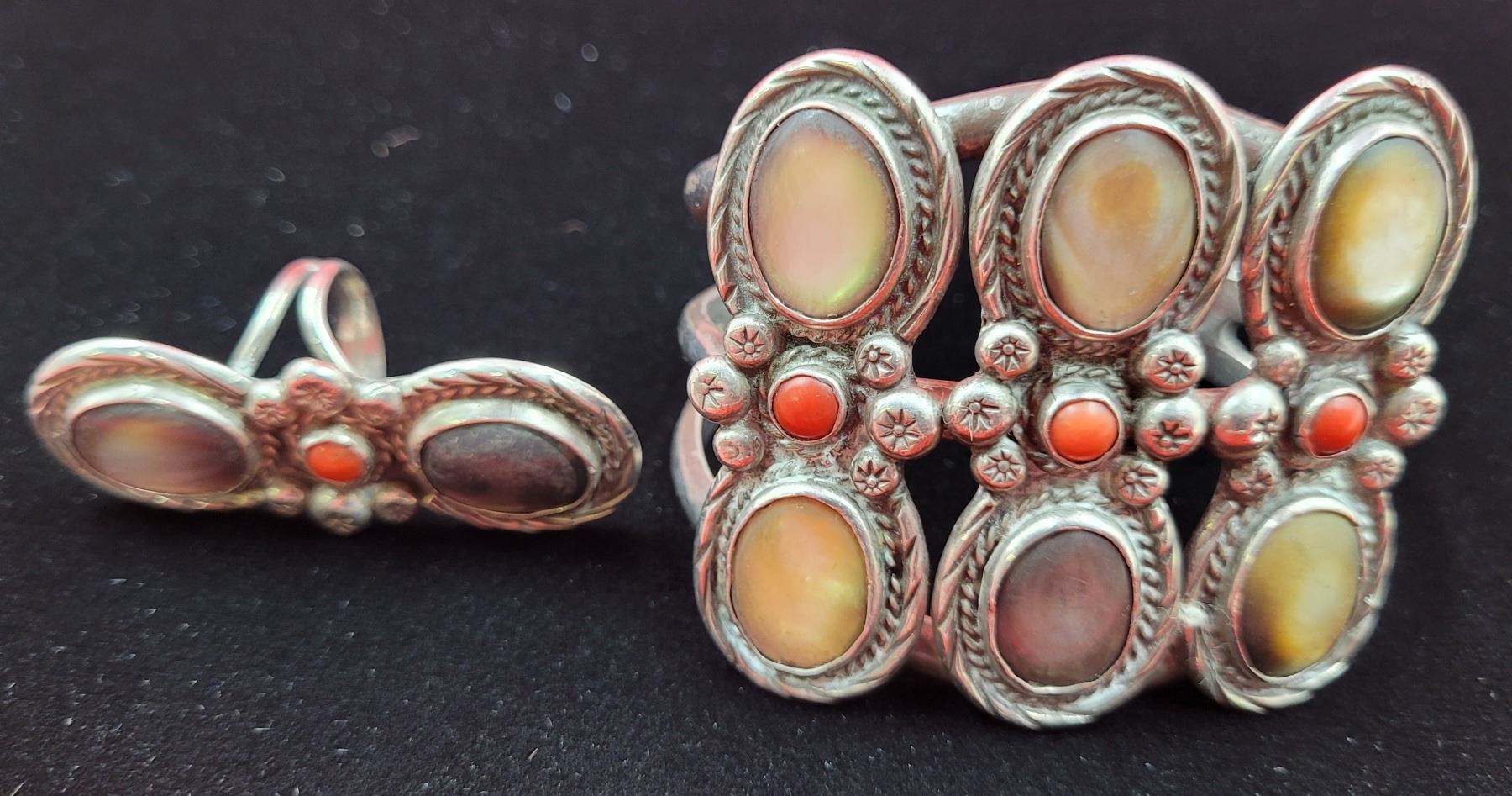 Matching Navajo Coral Mop 925 Sterling Cuff Bracelet & Ring
