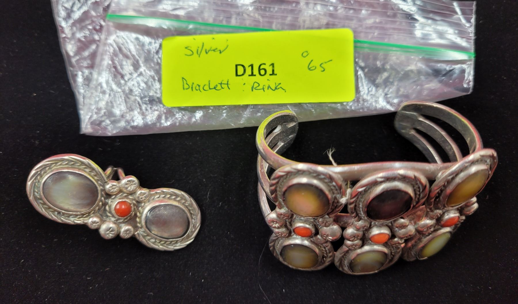 Lot 237 Matching Navajo Coral Mop 925 Sterling Cuff Bracelet & Ring