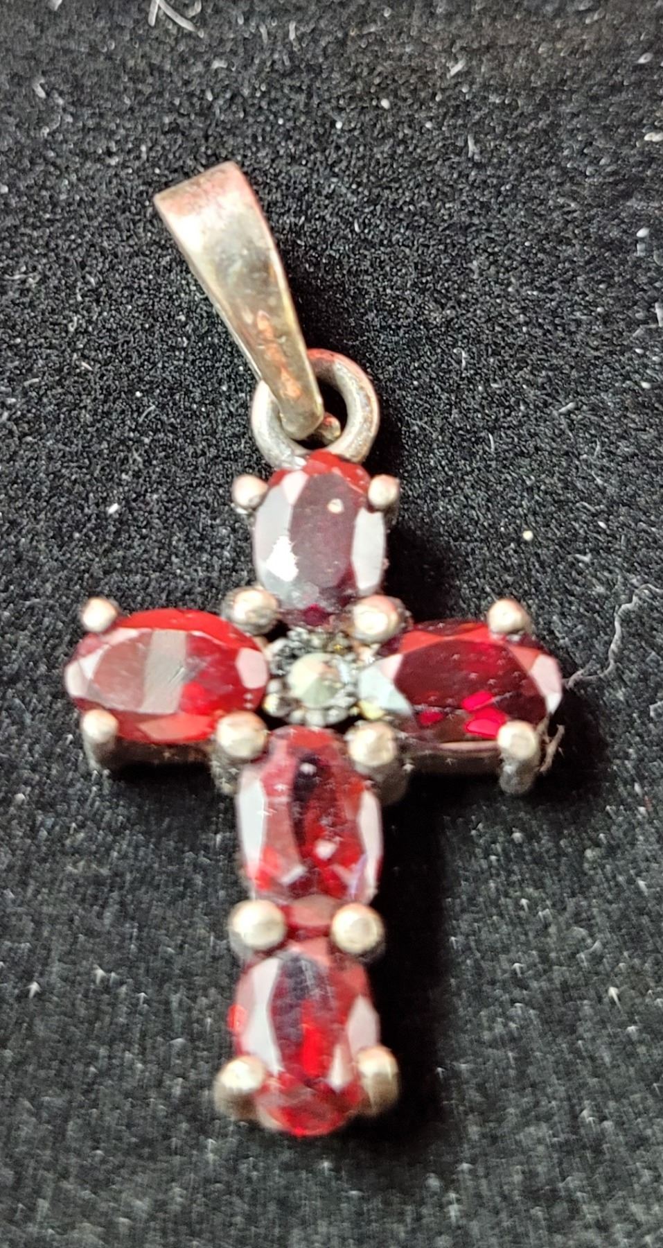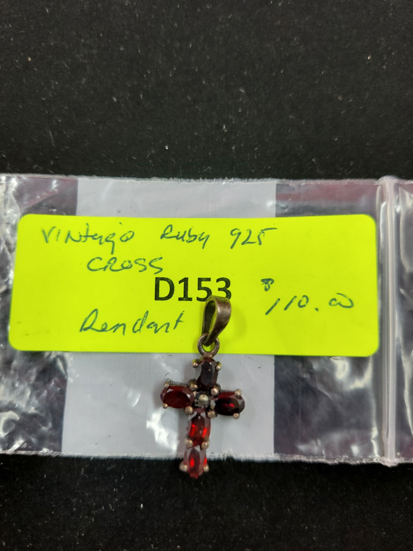 Lot 255 VTG 925 Sterling Ruby Cross Pendant