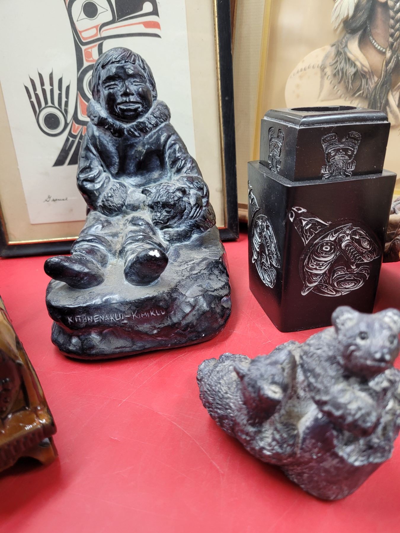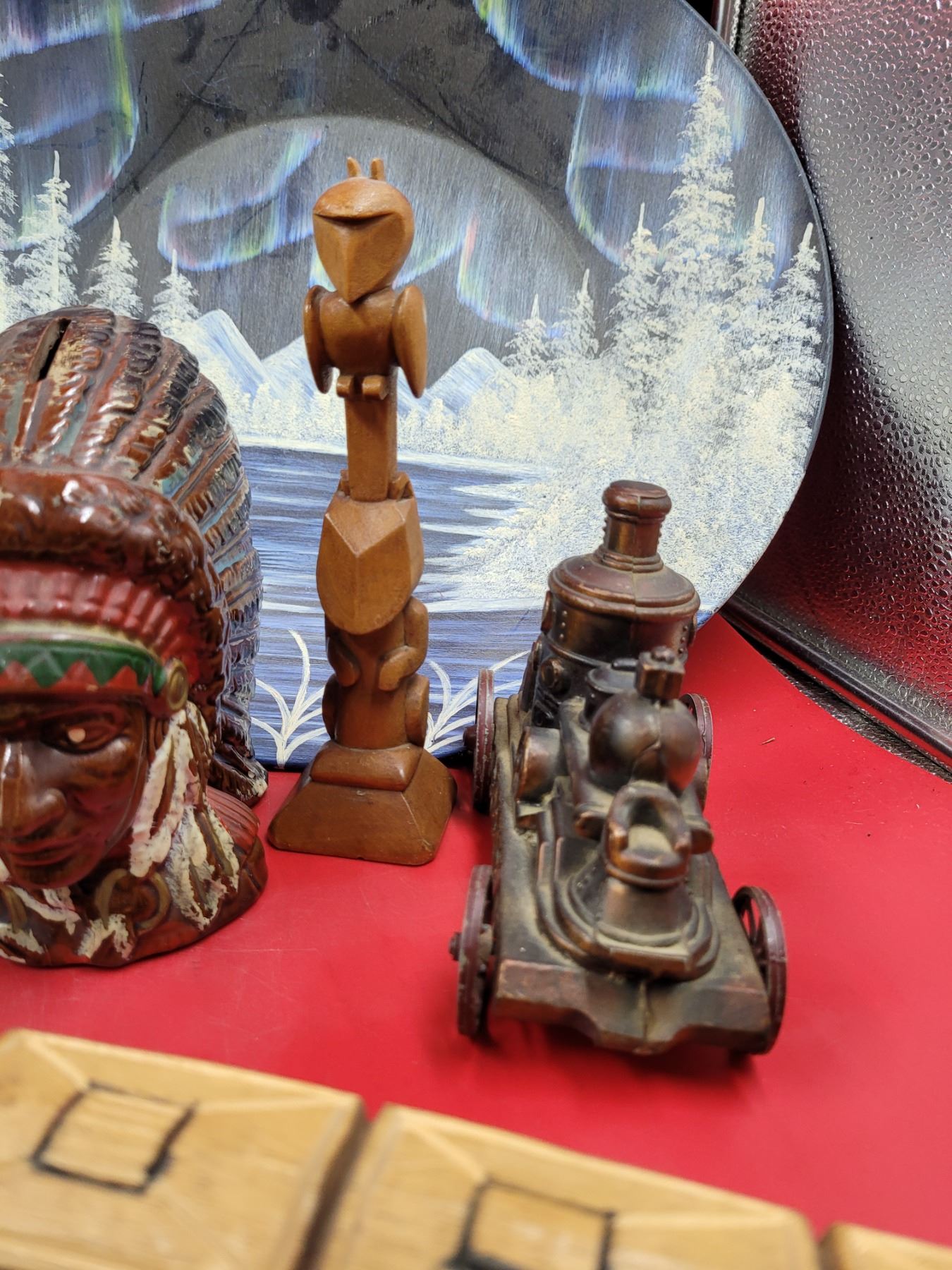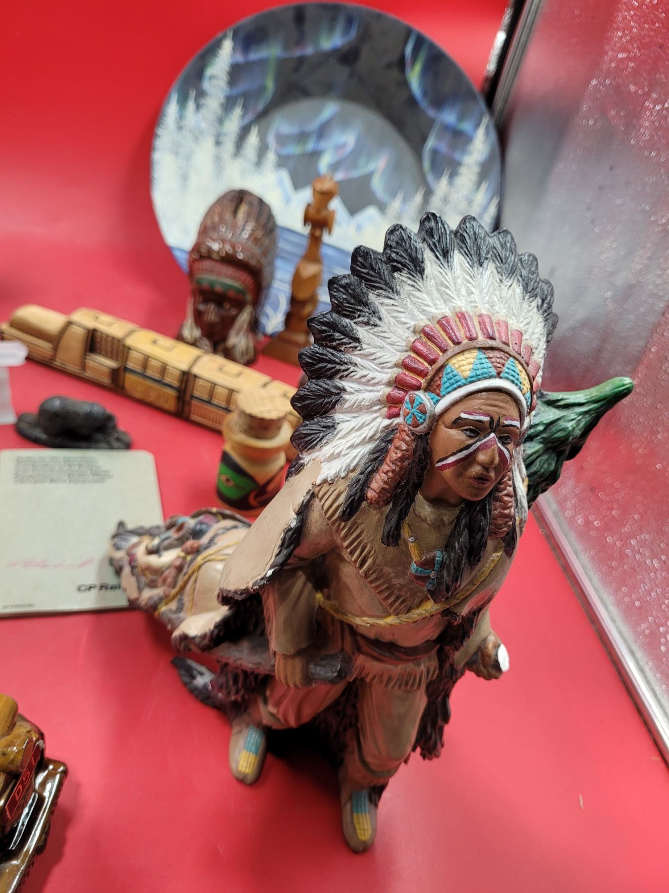 Indigenous & Railroad Lot w/ Indigenous Art, Train Tin, Decorative Plate, & More