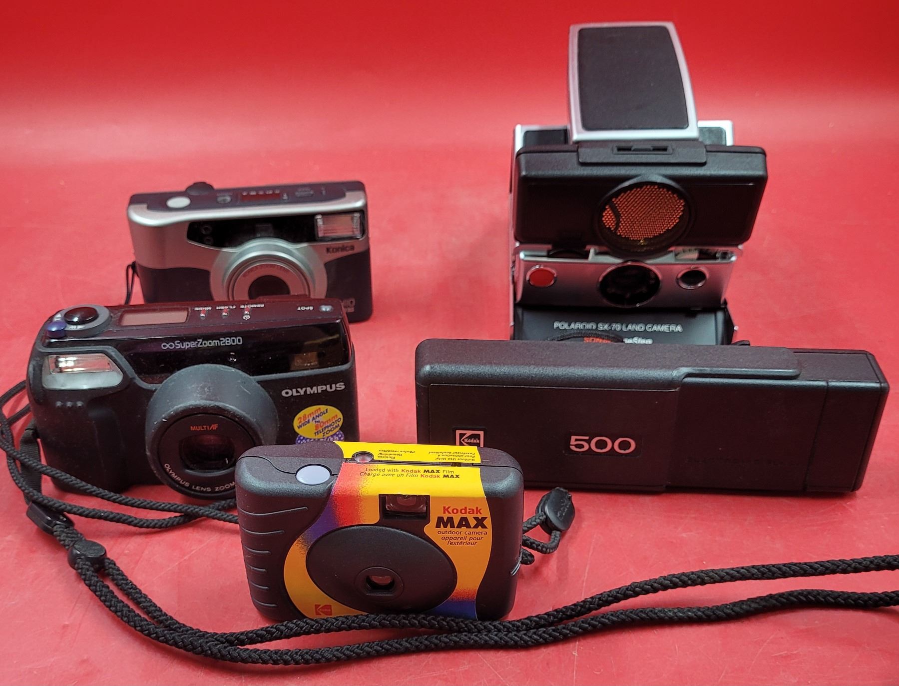 VTG Camera Lot w/ Polaroid Land Camera, Olympus Super Zoom, & More
