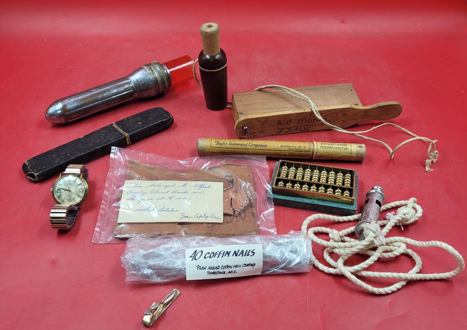 Lot 356 VTG Smalls Lot w/ Coffin Nails, Mini Abacus, Whistle, & More