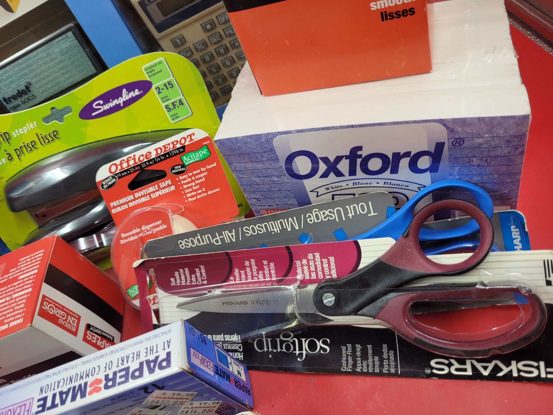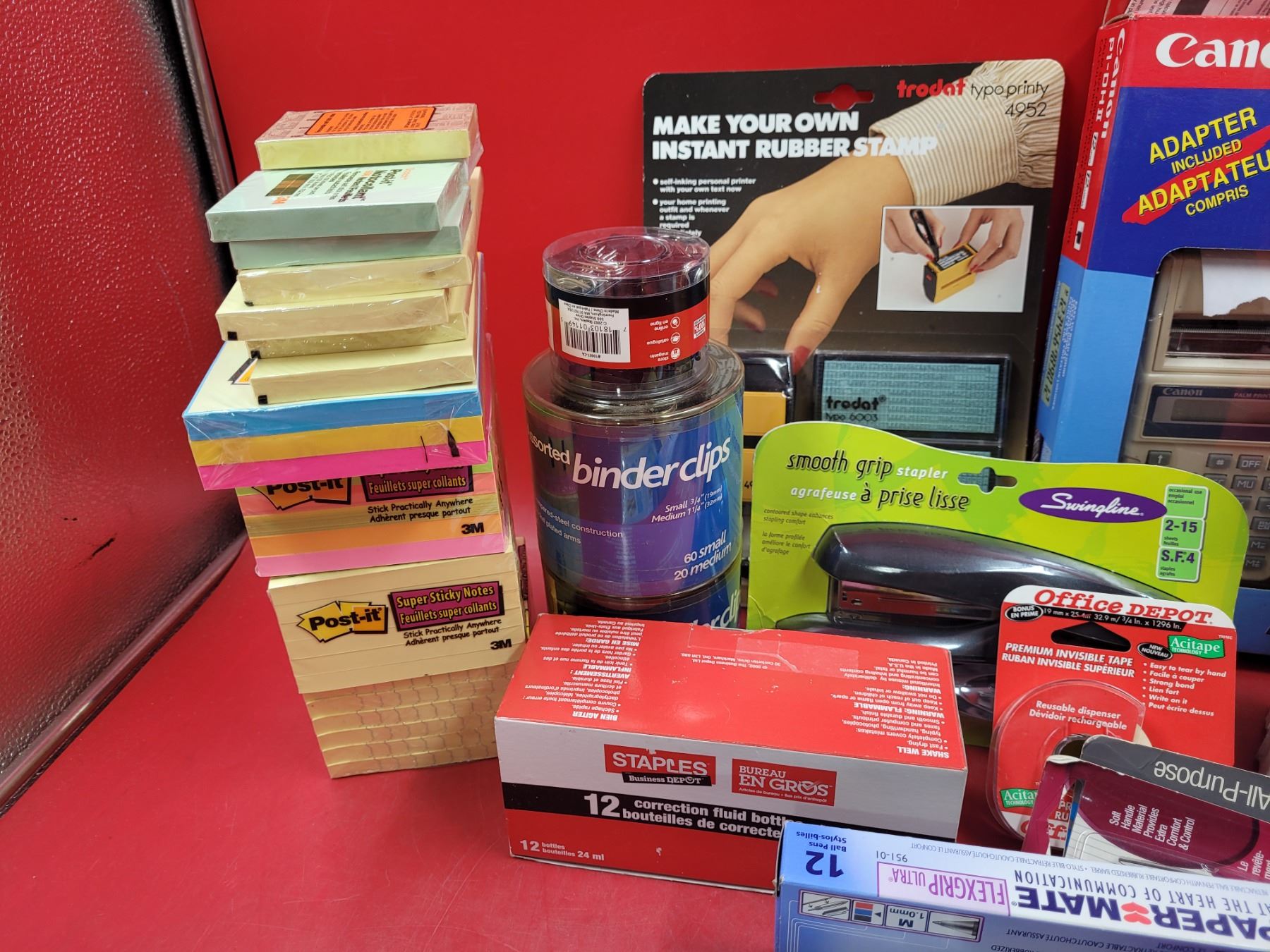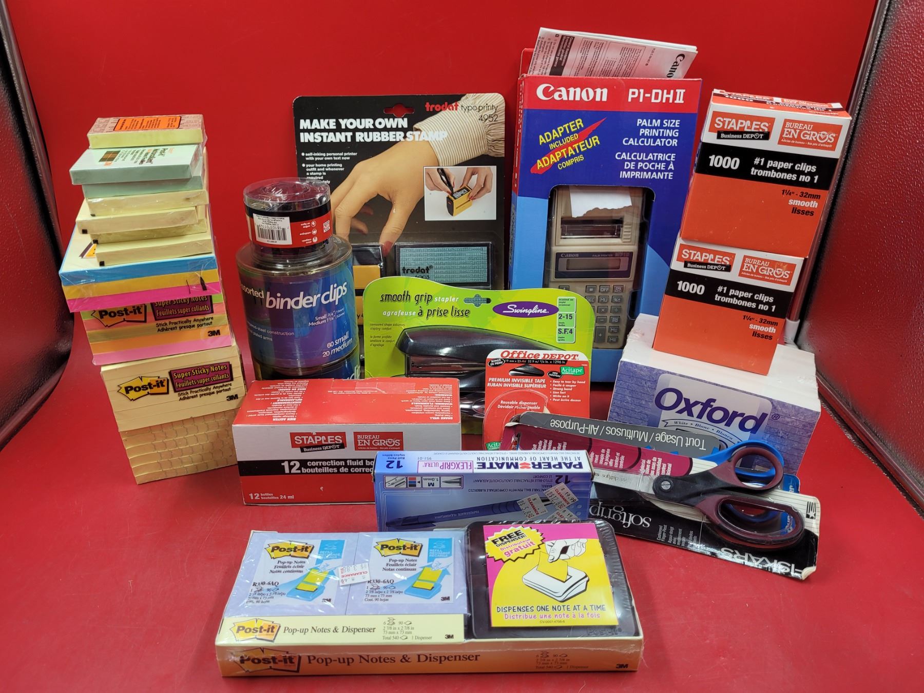Lot 374 Office Supplies Lot w/ Sticky Notes, Pens, Corrector Fluid Bottles, Scissors, Paper Clips, & More