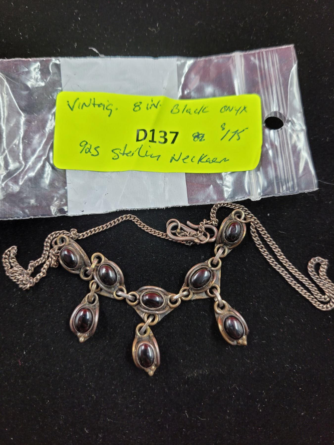 Lot 451 VTG 925 Sterling & Black Onyx Necklace