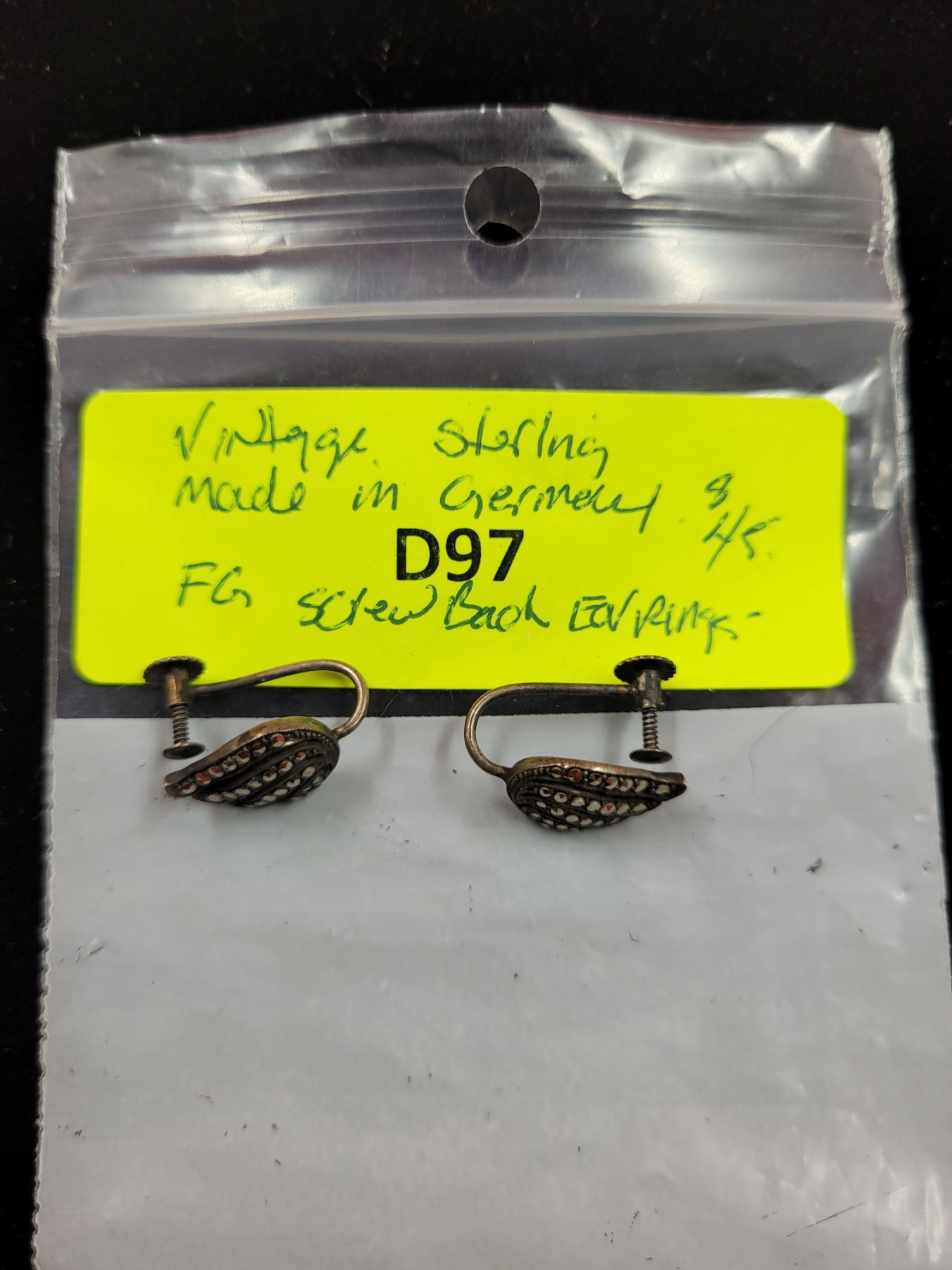 Pair of VTG 925 Sterling Screw Back Earrings Made in Germany